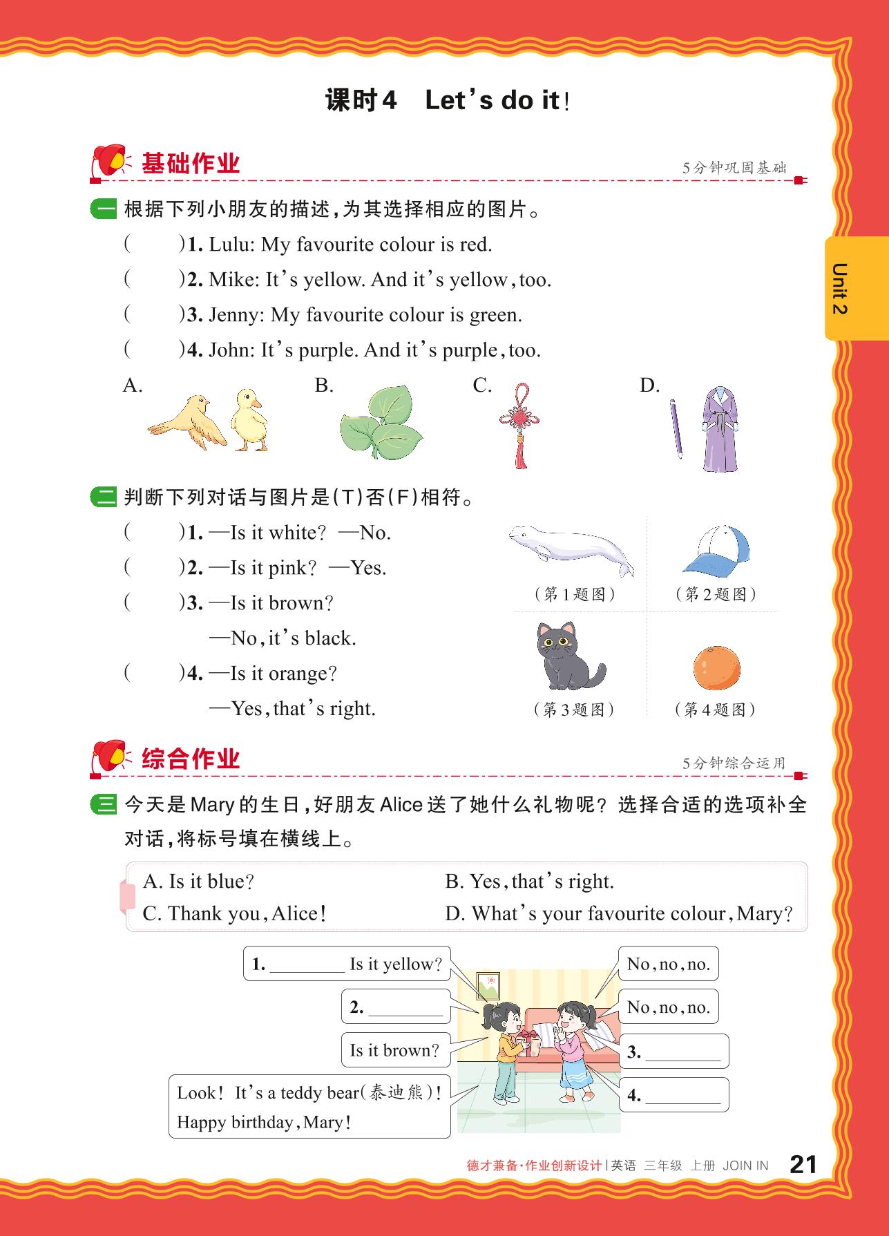 2024秋上册三年级英语剑桥版 Unit 2—课时 4 Let's do it!