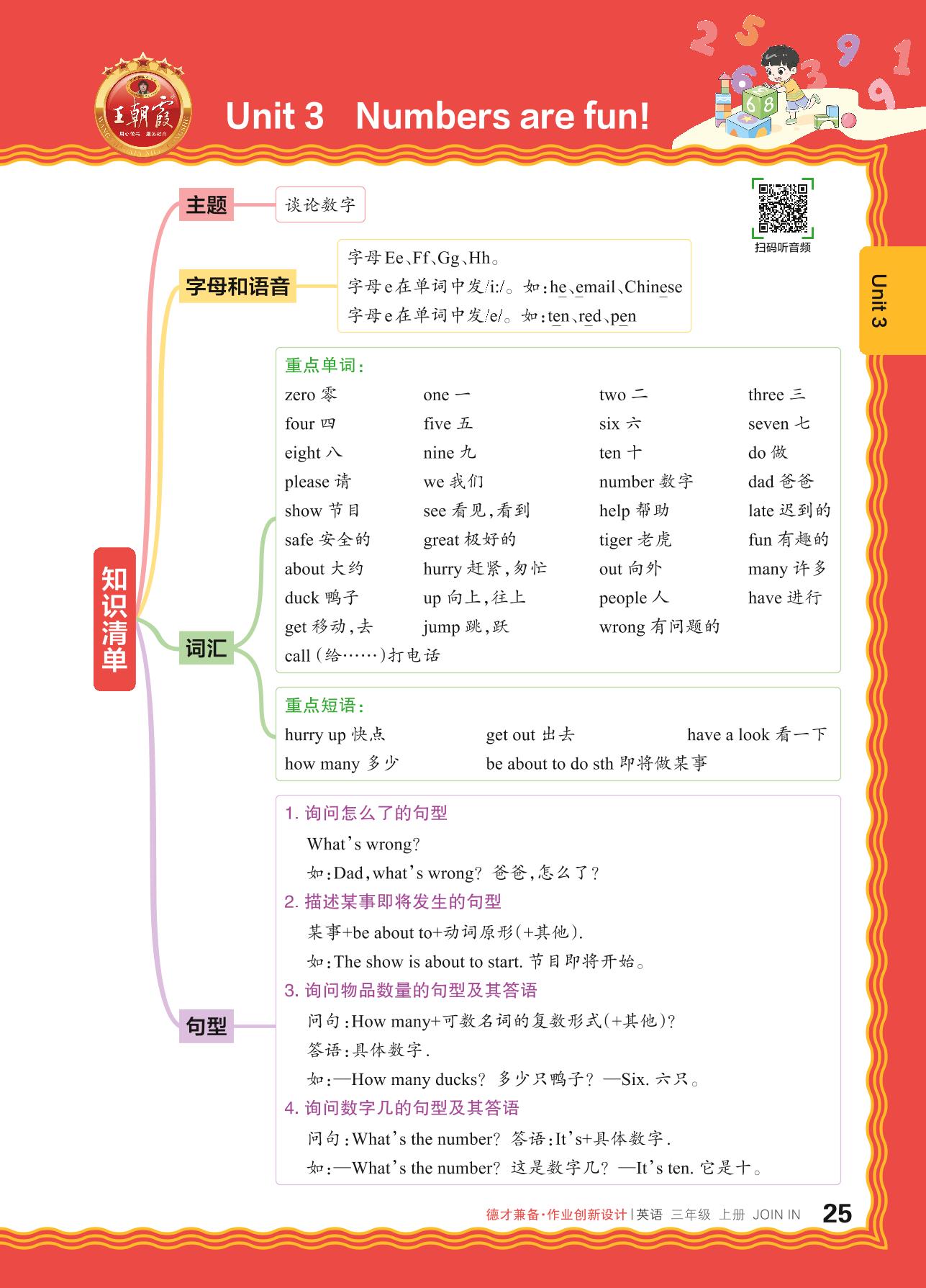 2024秋上册三年级英语剑桥版 Unit 3 知识清单