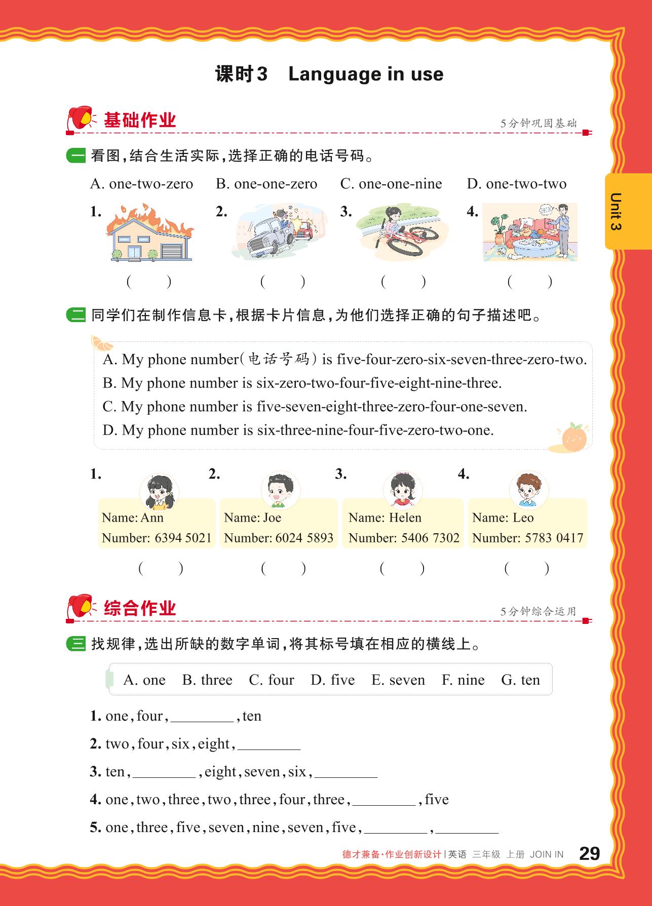 2024秋上册三年级英语剑桥版 Unit 3—课时 3 Language in use