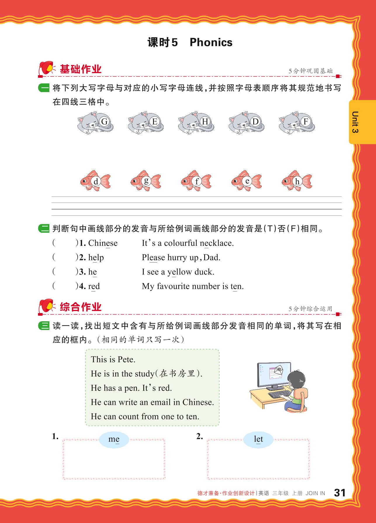 2024秋上册三年级英语剑桥版 Unit 3—课时 5 Phonics
