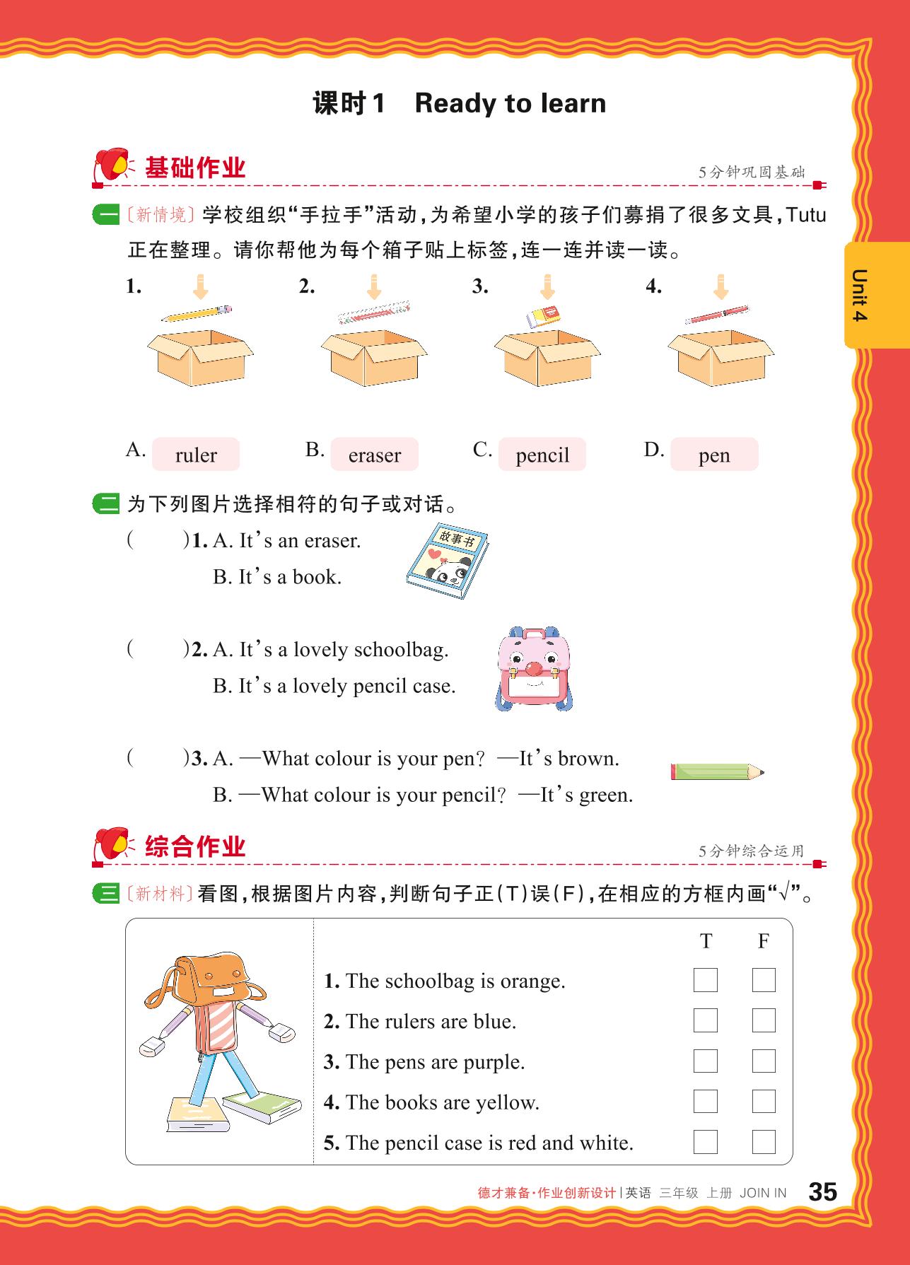 2024秋上册三年级英语剑桥版 Unit 4—课时 1 Ready to learn
