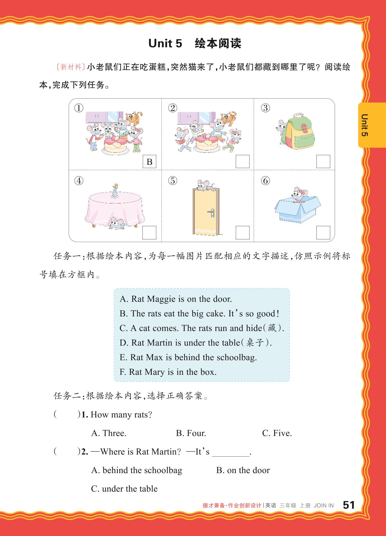 2024秋上册三年级英语剑桥版 Unit 5 绘本阅读