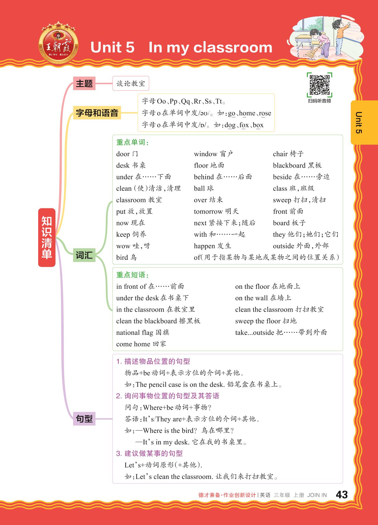 2024秋上册三年级英语剑桥版 Unit 5 知识清单