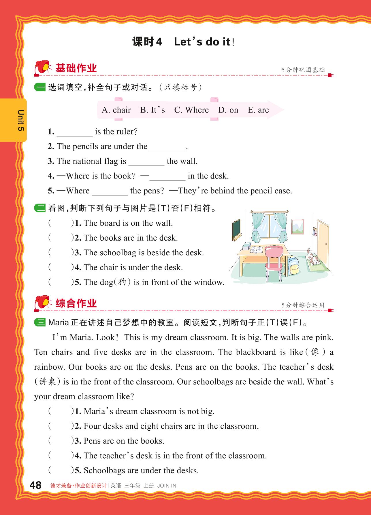 2024秋上册三年级英语剑桥版 Unit 5—课时 4 Let's do it!