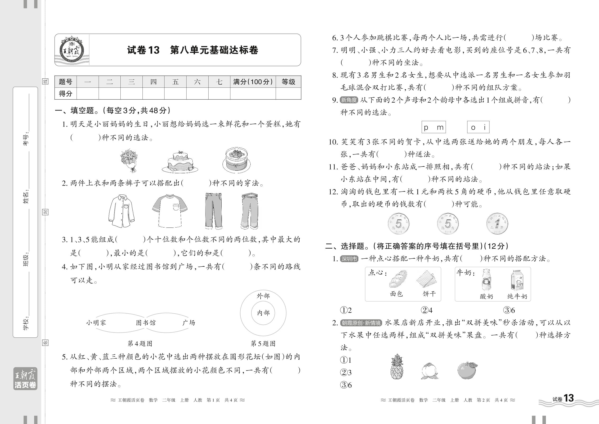 2024秋上册二年级数学人教版 第八单元基础达标卷【13】