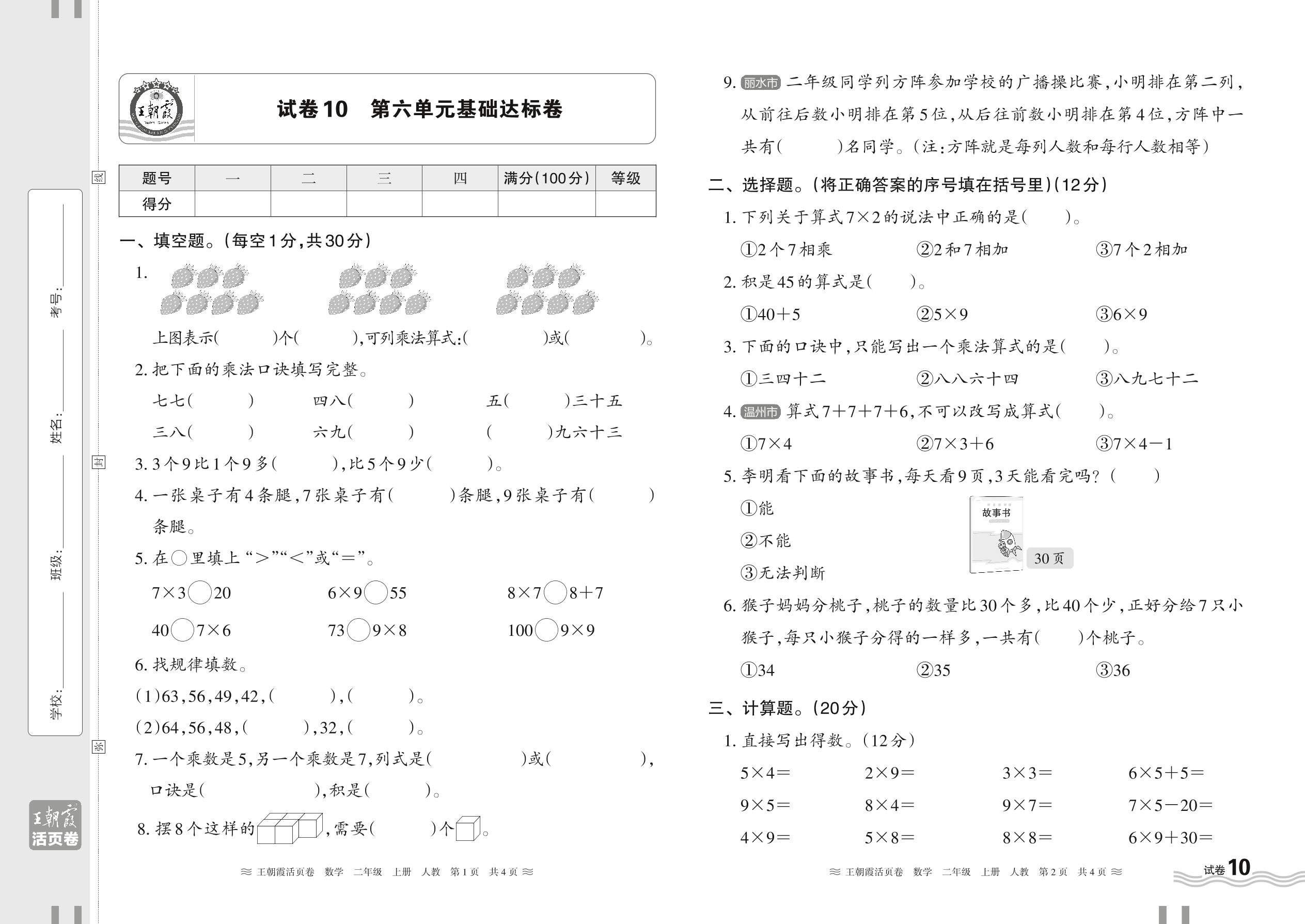 二年级数学人教版上册单元卷