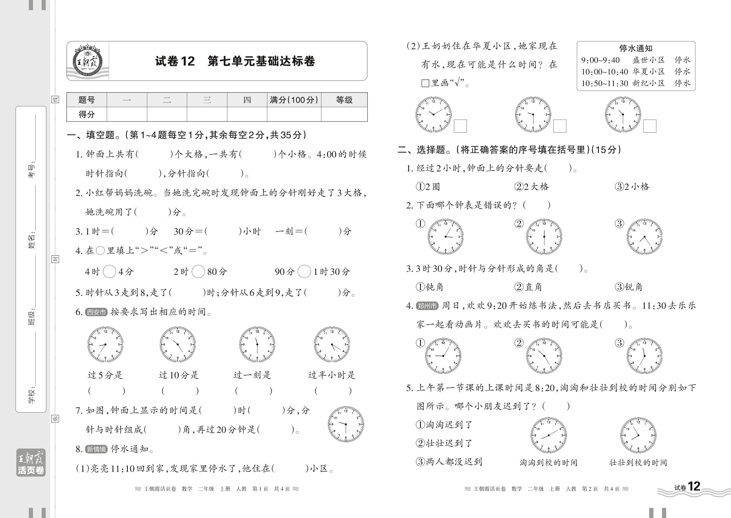 2024秋上册二年级数学人教版 第七单元基础达标卷【12】