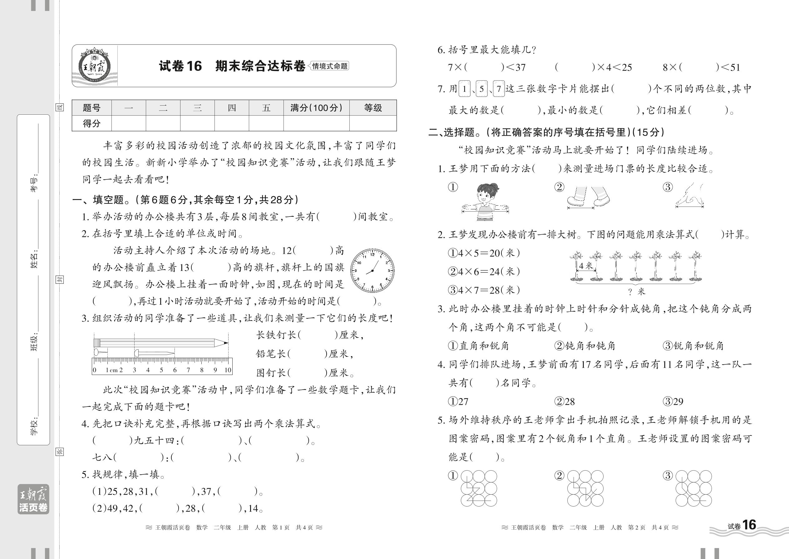 2024秋上册二年级数学人教版 期末综合达标卷【16】