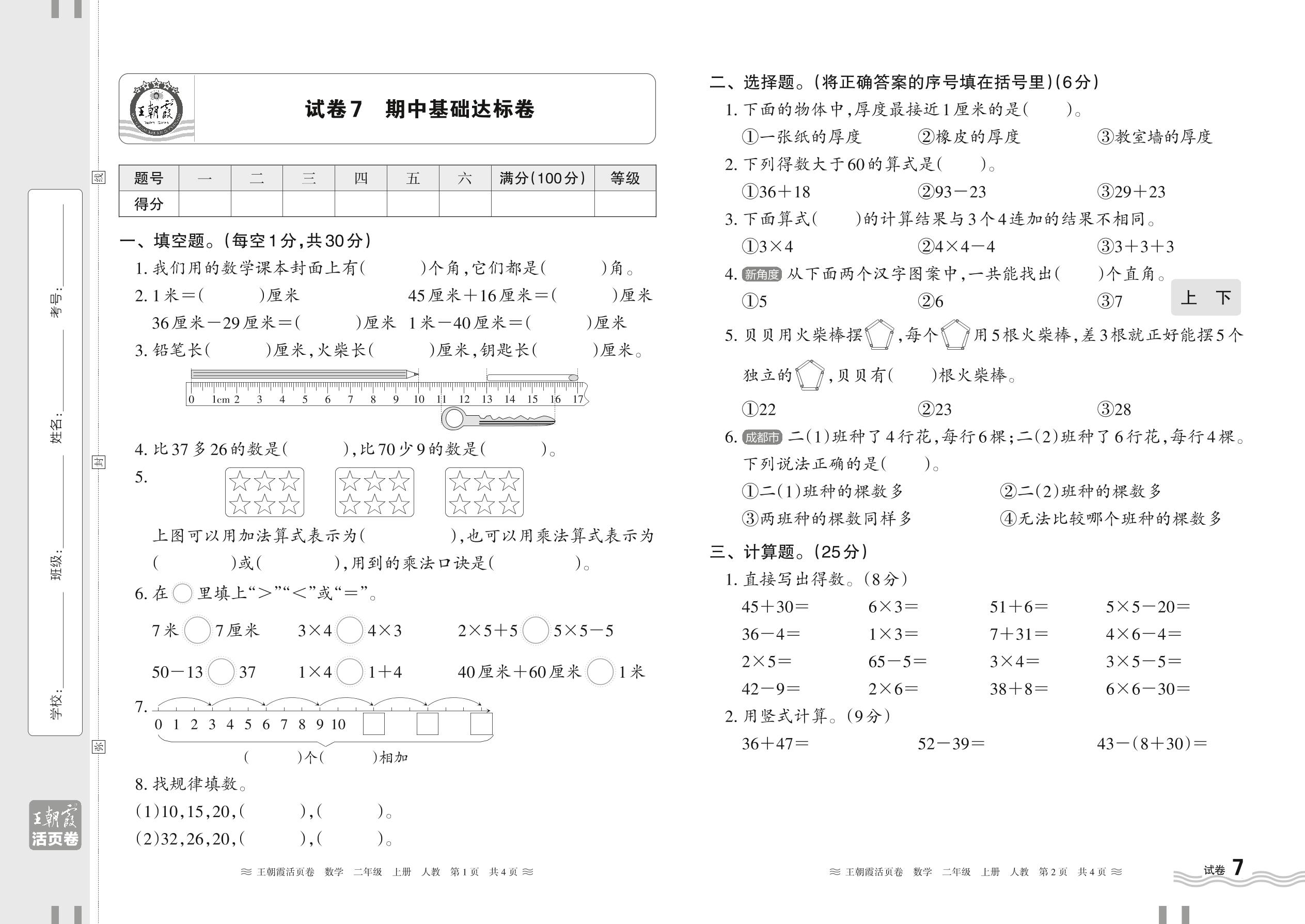 2024秋上册二年级数学人教版 期中基础达标卷【7】