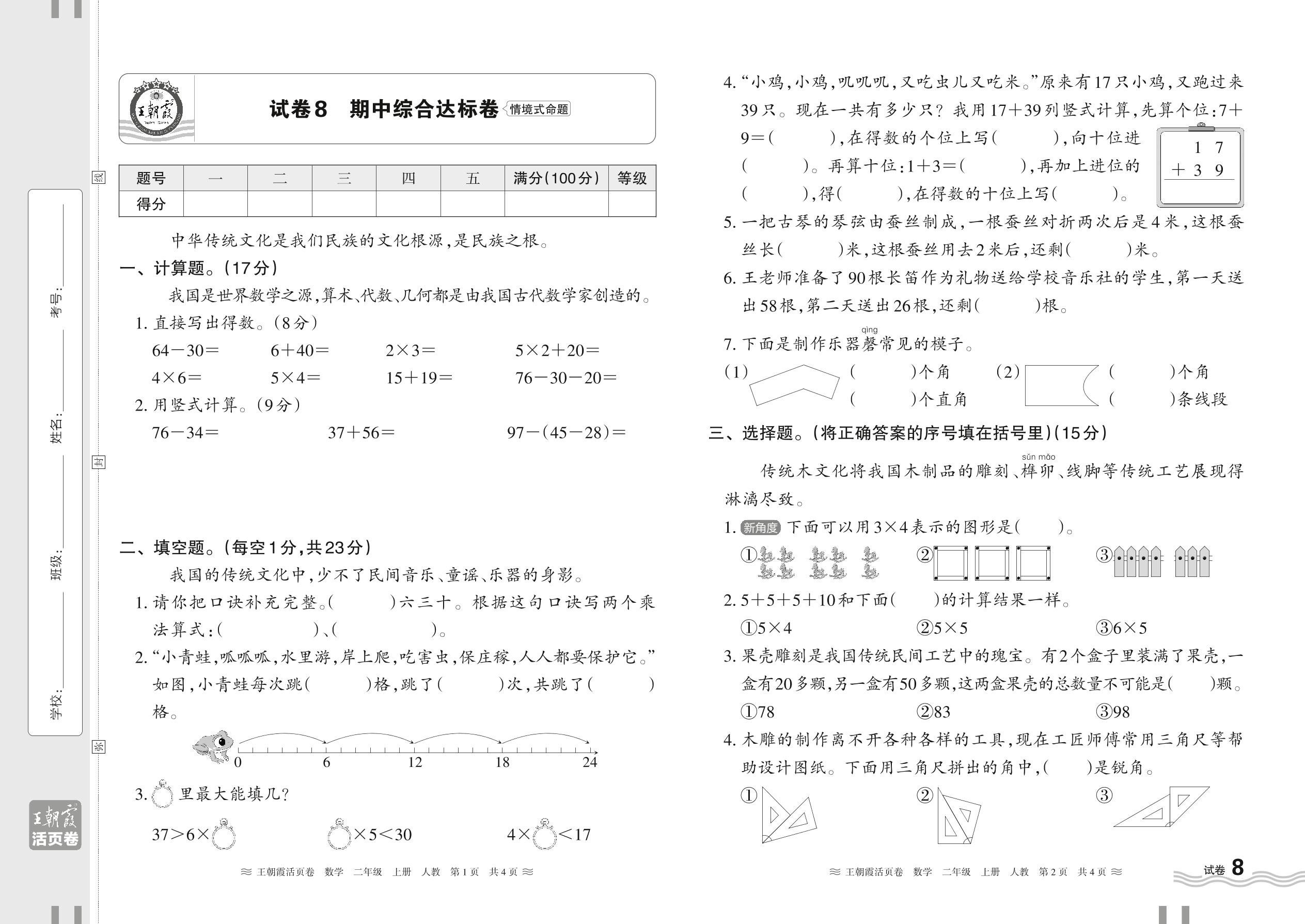 2024秋上册二年级数学人教版 期中综合达标卷【8】