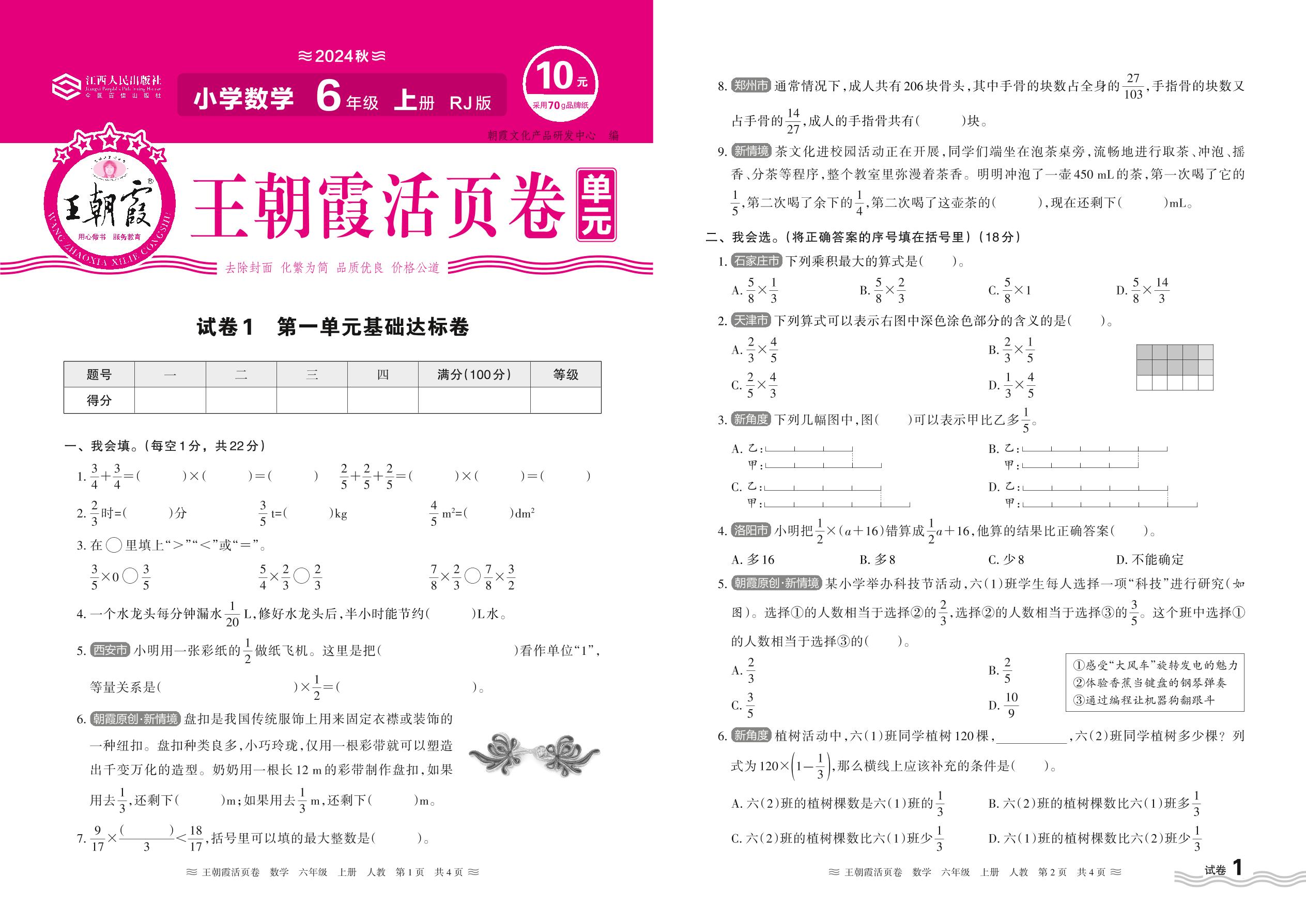 2024秋上册六年级数学人教版 第一单元基础达标卷【1】