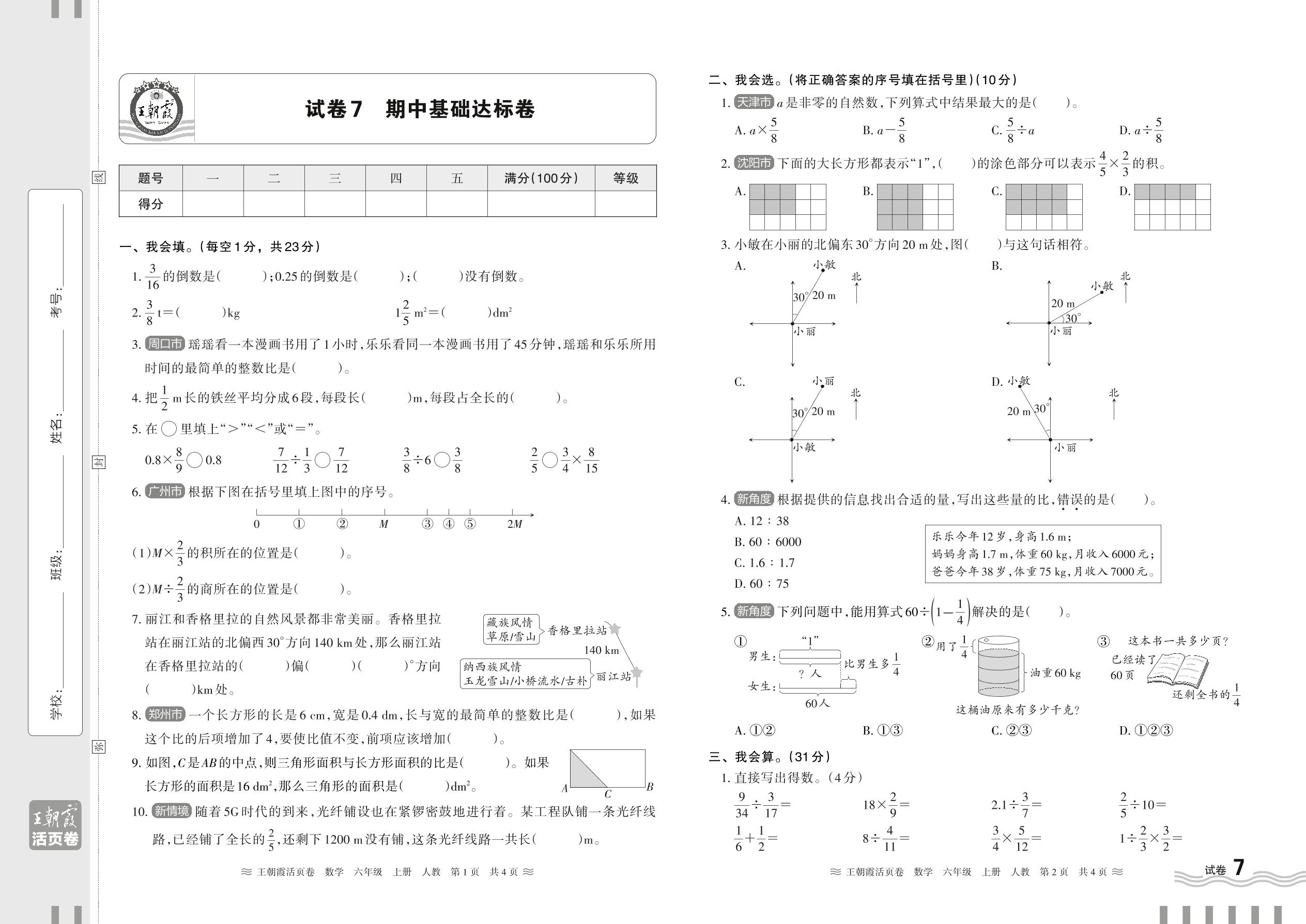 2024秋上册六年级数学人教版 期中基础达标卷【7】