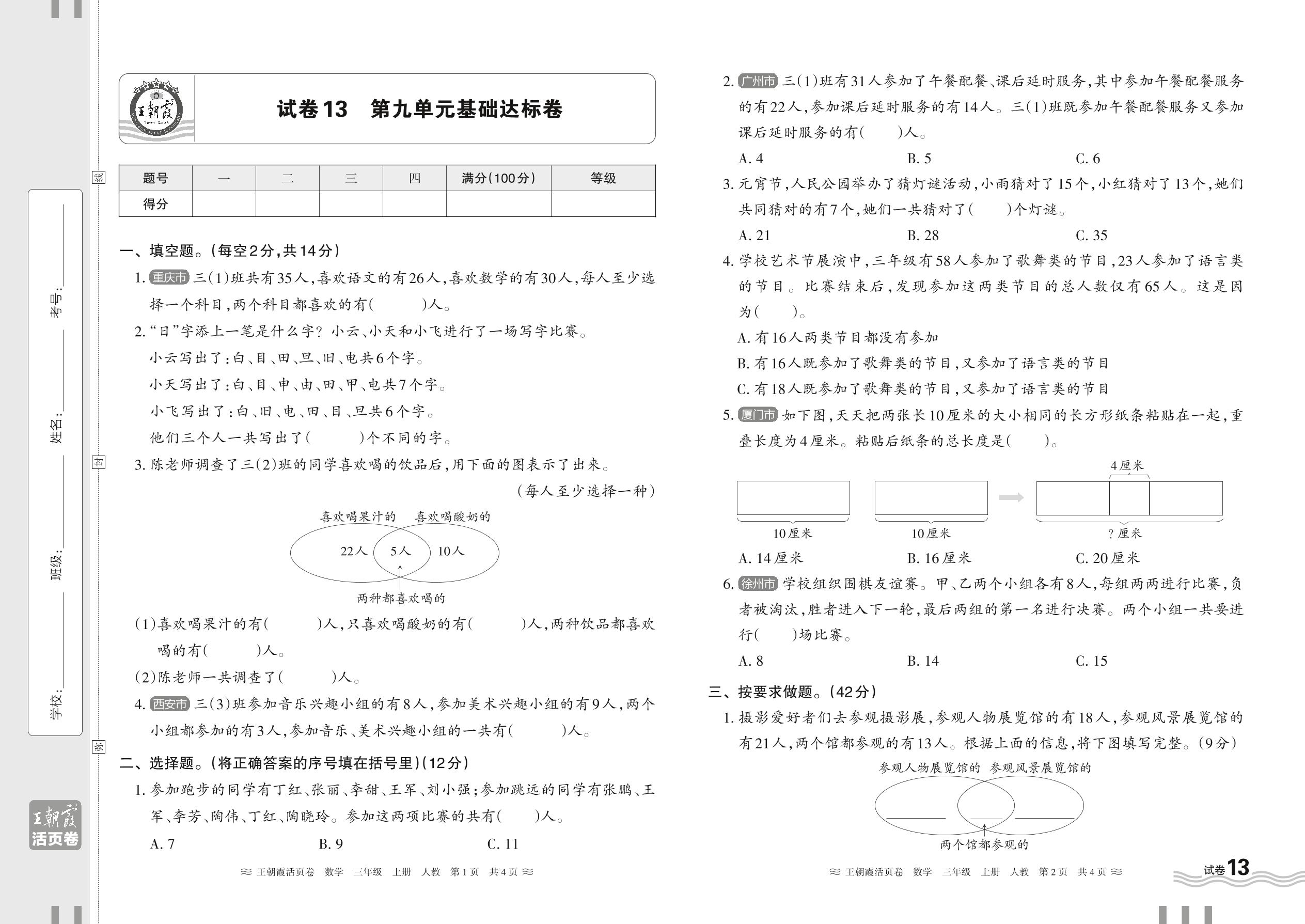 2024秋上册三年级数学人教版 第九单元基础达标卷【13】