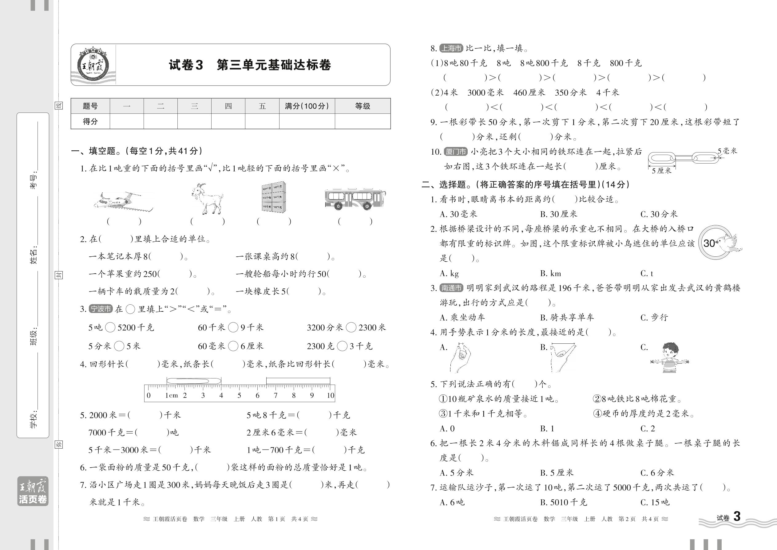 2024秋上册三年级数学人教版 第三单元基础达标卷【3】