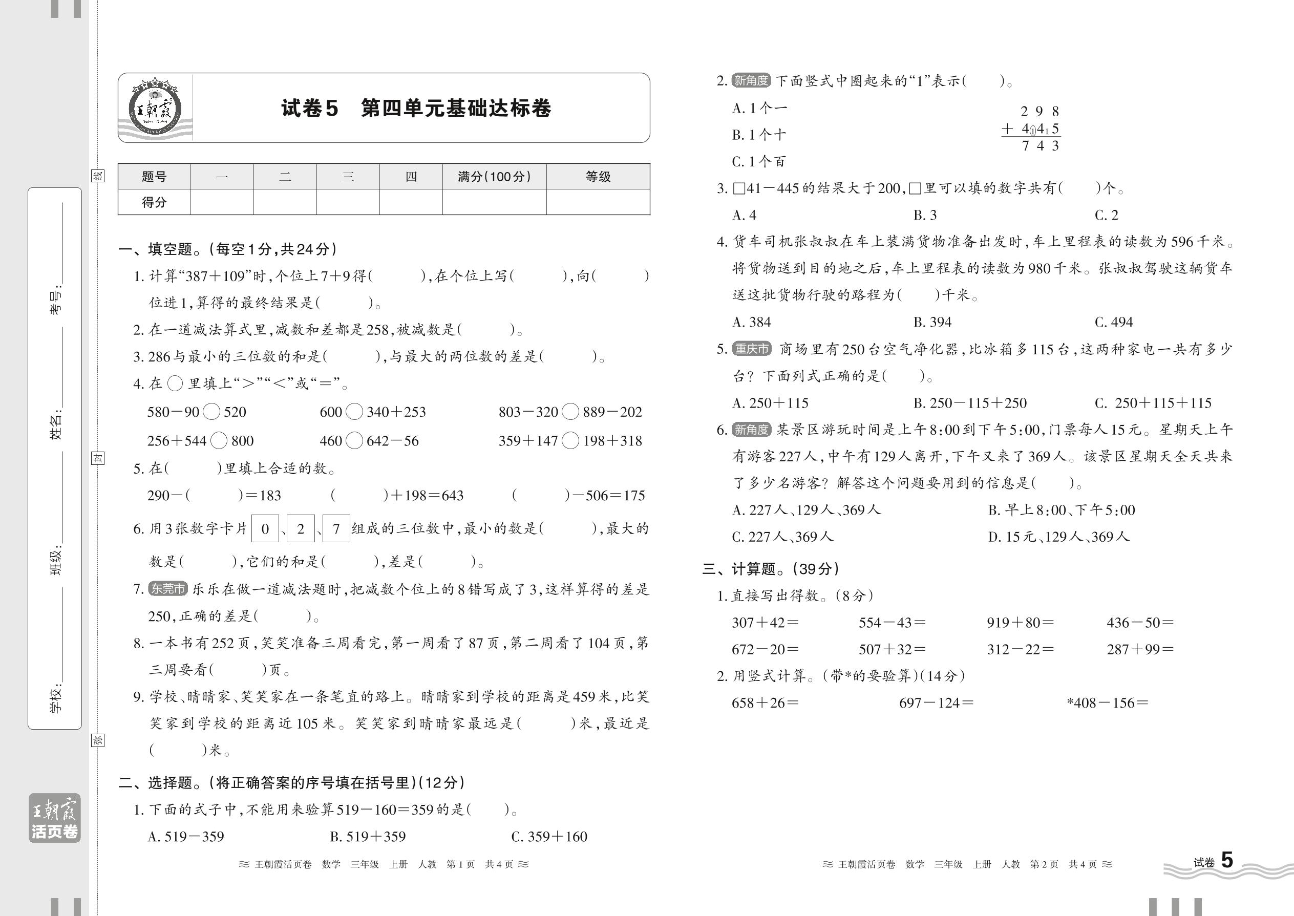 2024秋上册三年级数学人教版 第四单元基础达标卷【5】