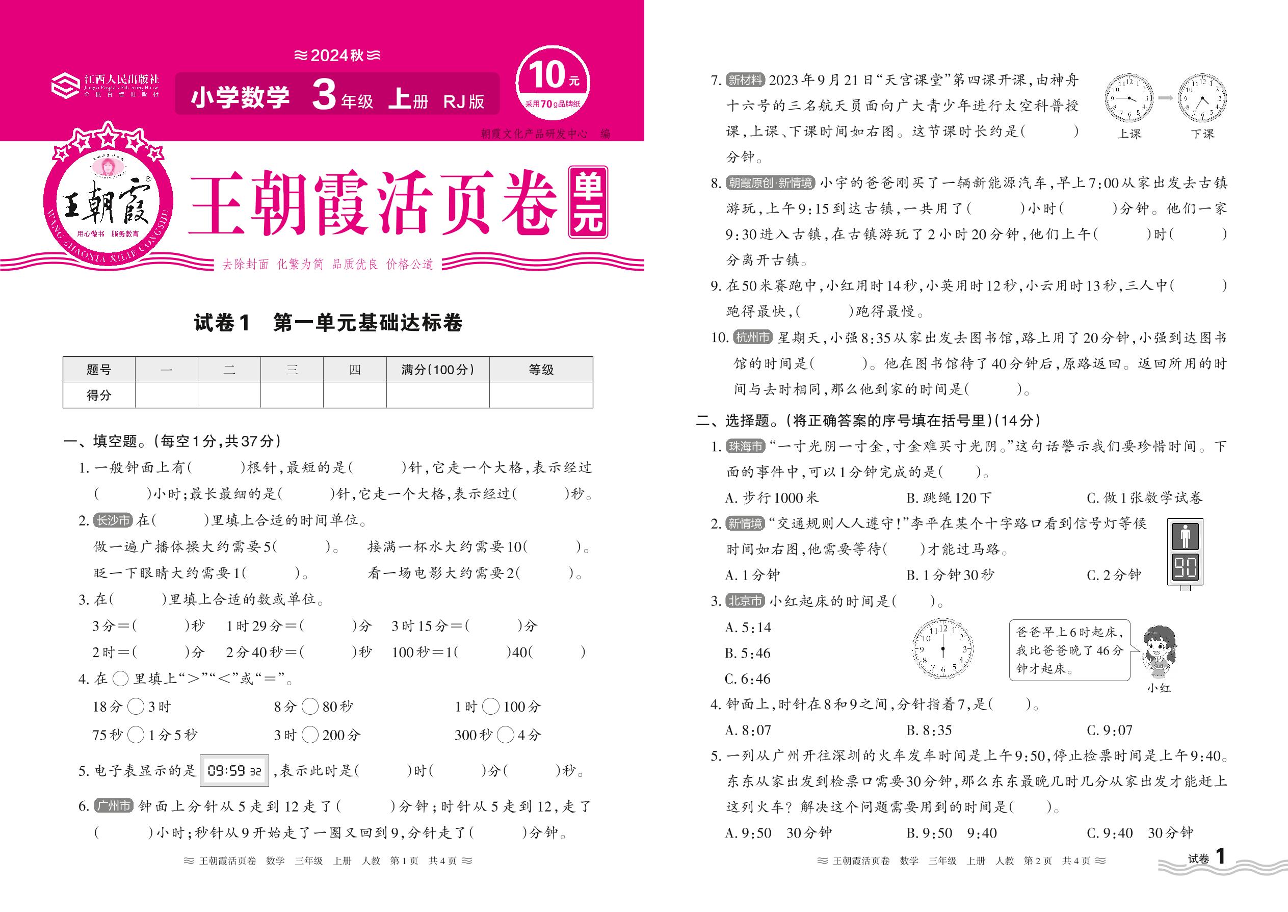 2024秋上册三年级数学人教版 第一单元基础达标卷【1】
