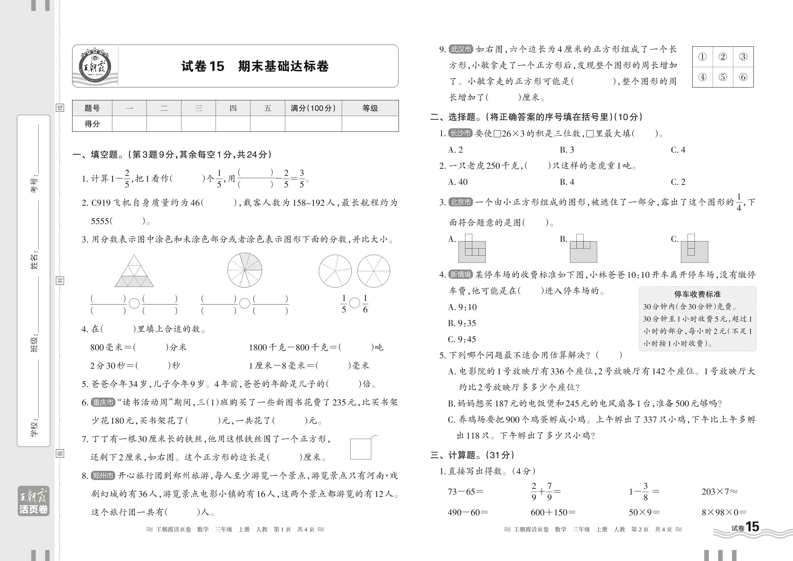 2024秋上册三年级数学人教版 期末基础达标卷【15】