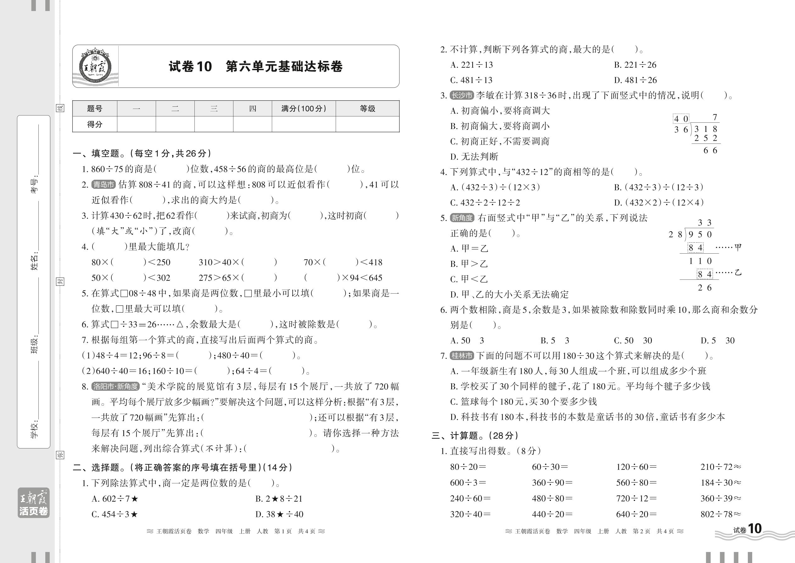 2024秋上册四年级数学人教版 第六单元基础达标卷【10】