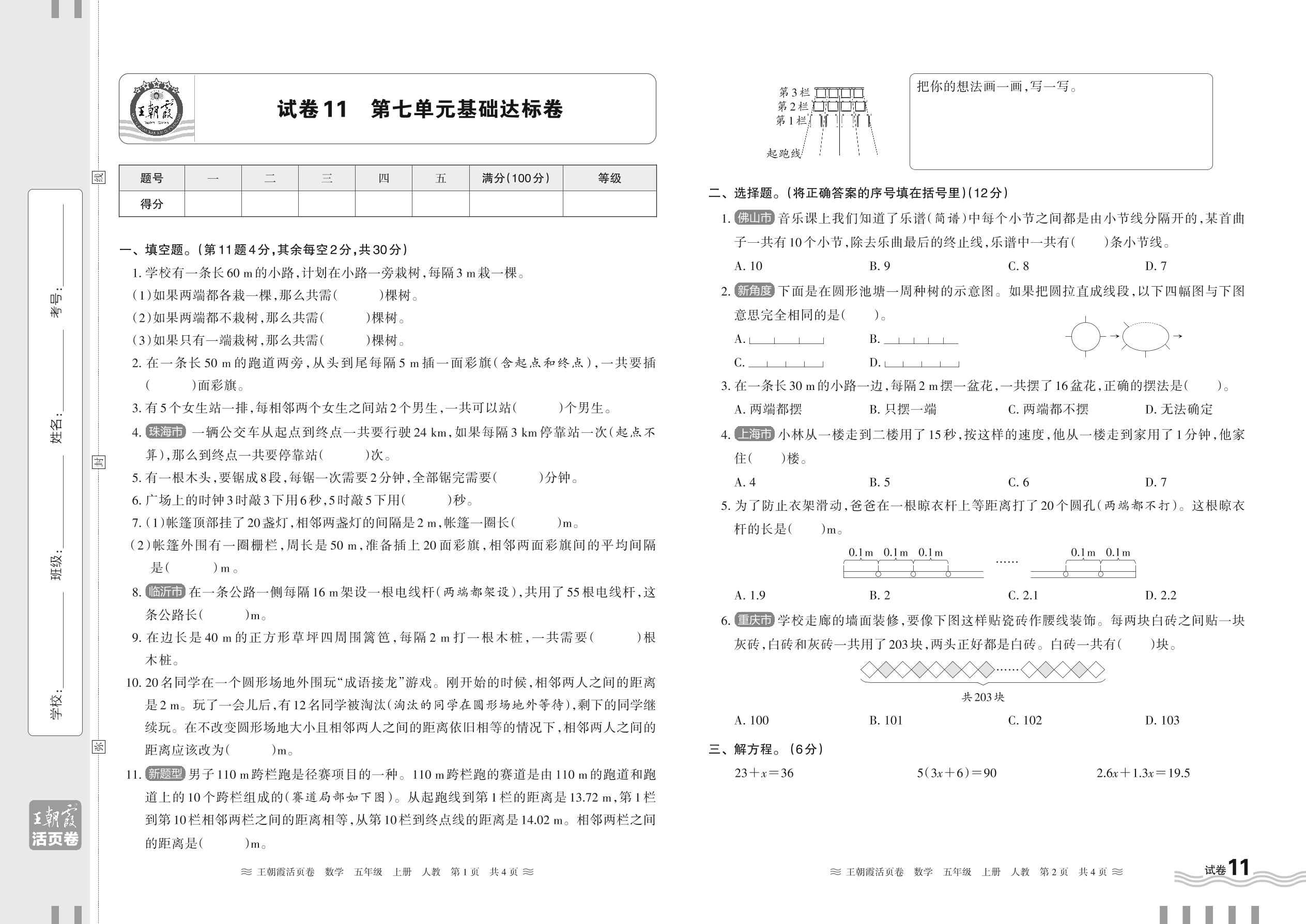 2024秋上册五年级数学人教版 第七单元基础达标卷【11】