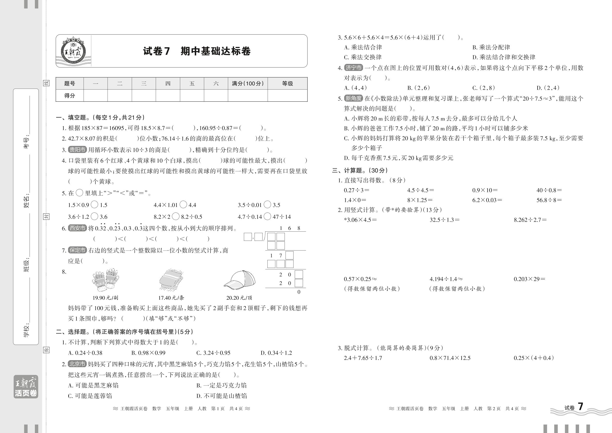 2024秋上册五年级数学人教版 期中基础达标卷_R240823165811243【7】
