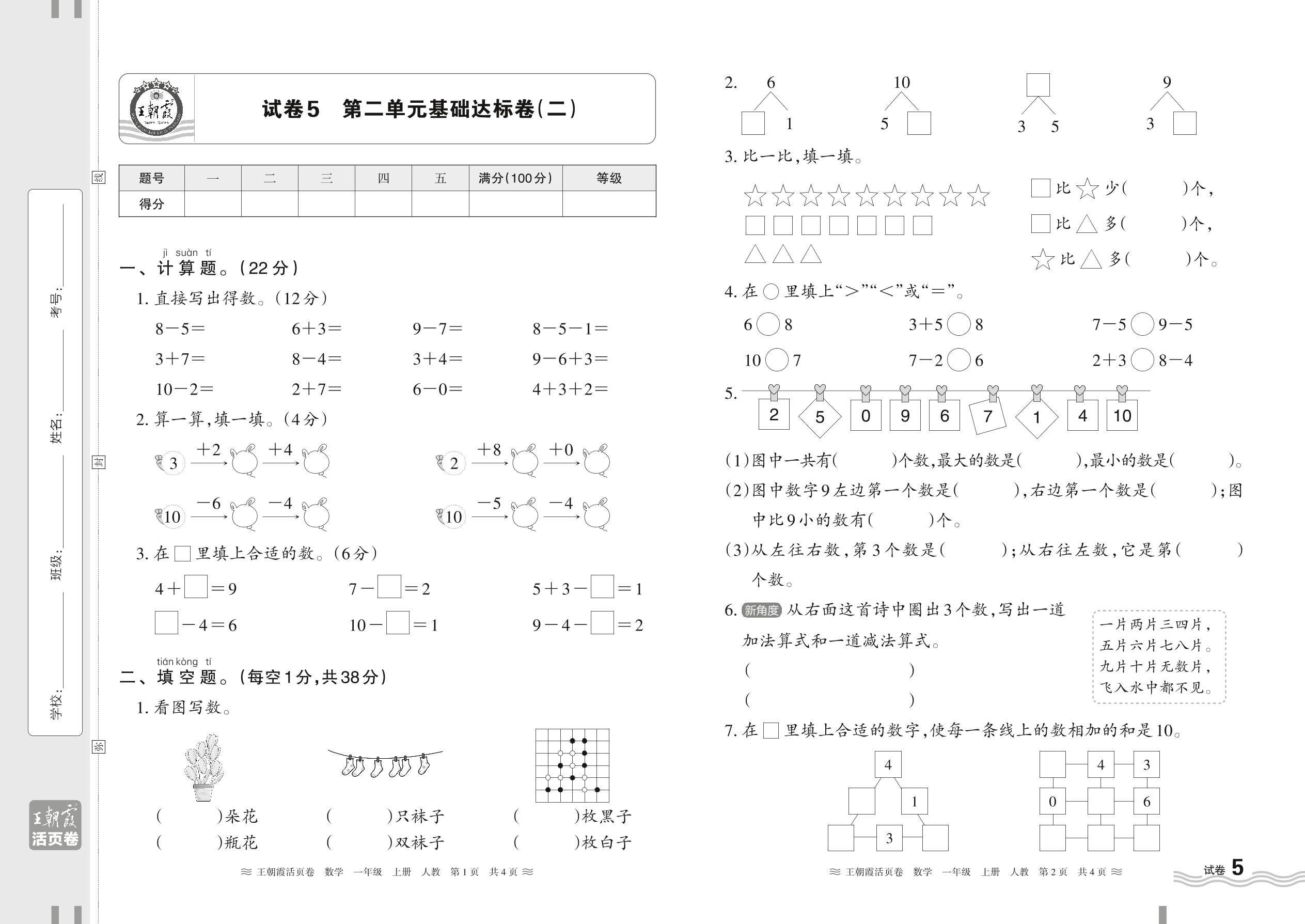 2024秋上册一年级数学人教版 第二单元基础达标卷(二)【5】