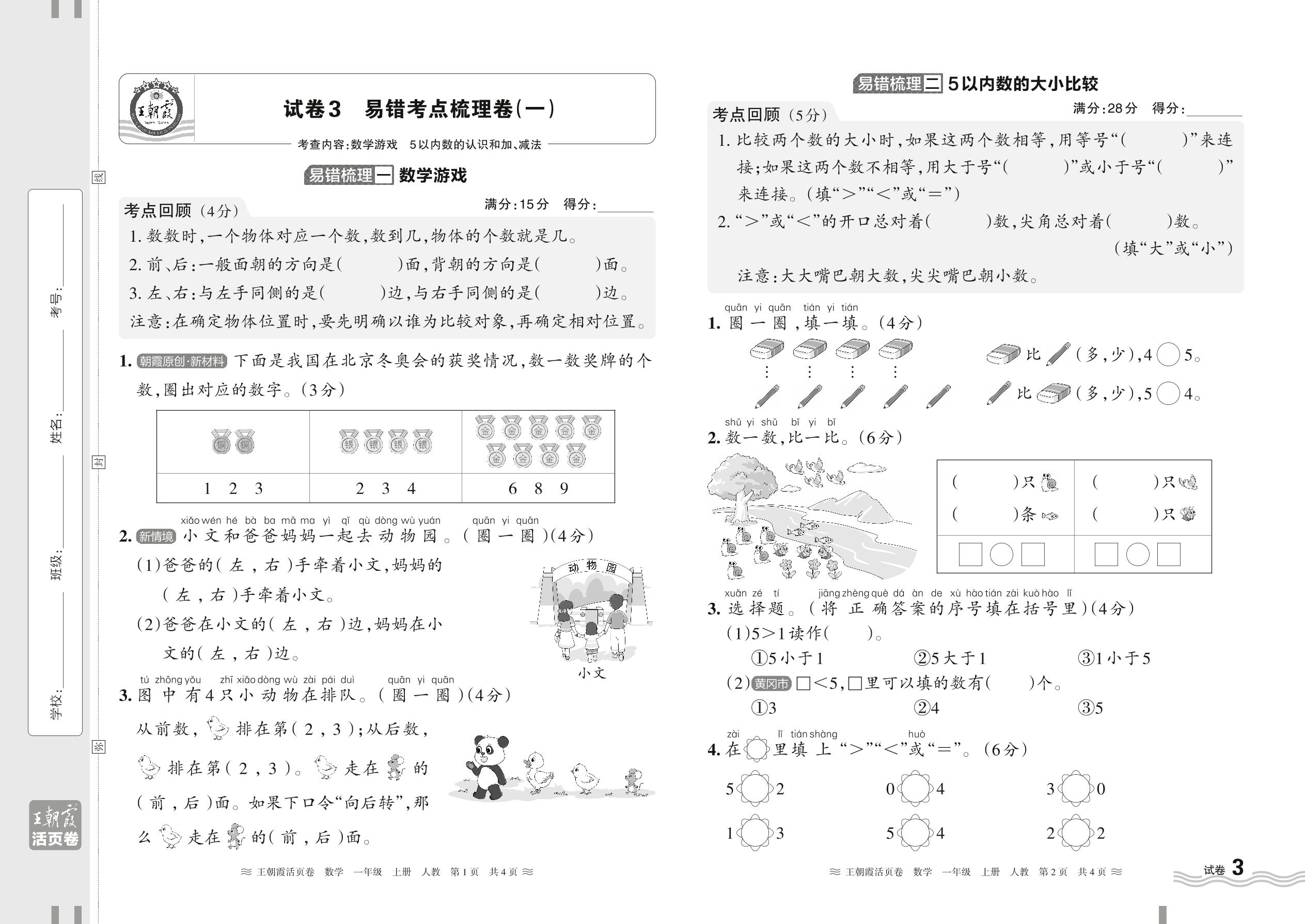 2024秋上册一年级数学人教版 易错考点梳理卷:数学游戏 以内数的认识和加、减法【3】