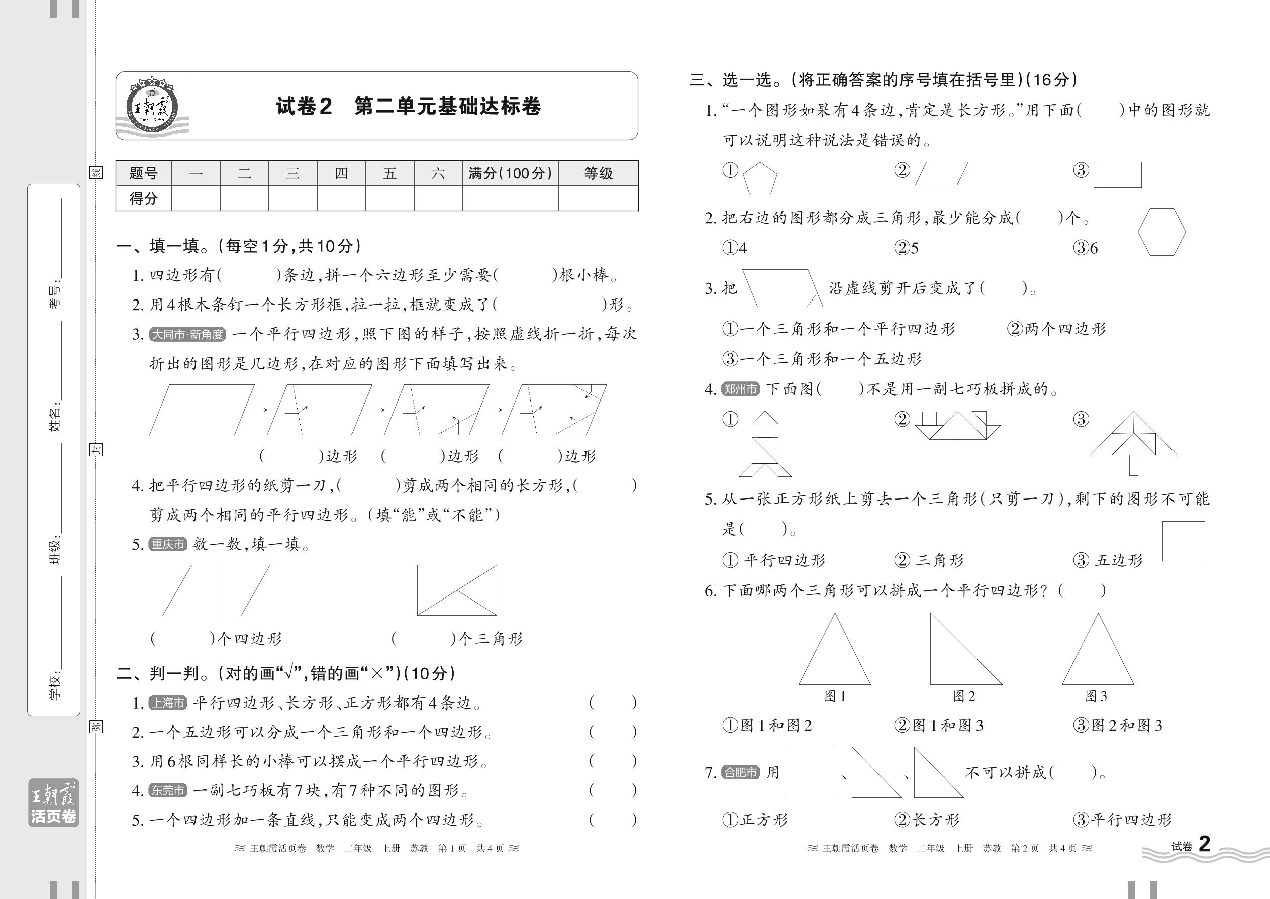 2024秋上册二年级数学苏教版 第二单元基础达标卷【2】