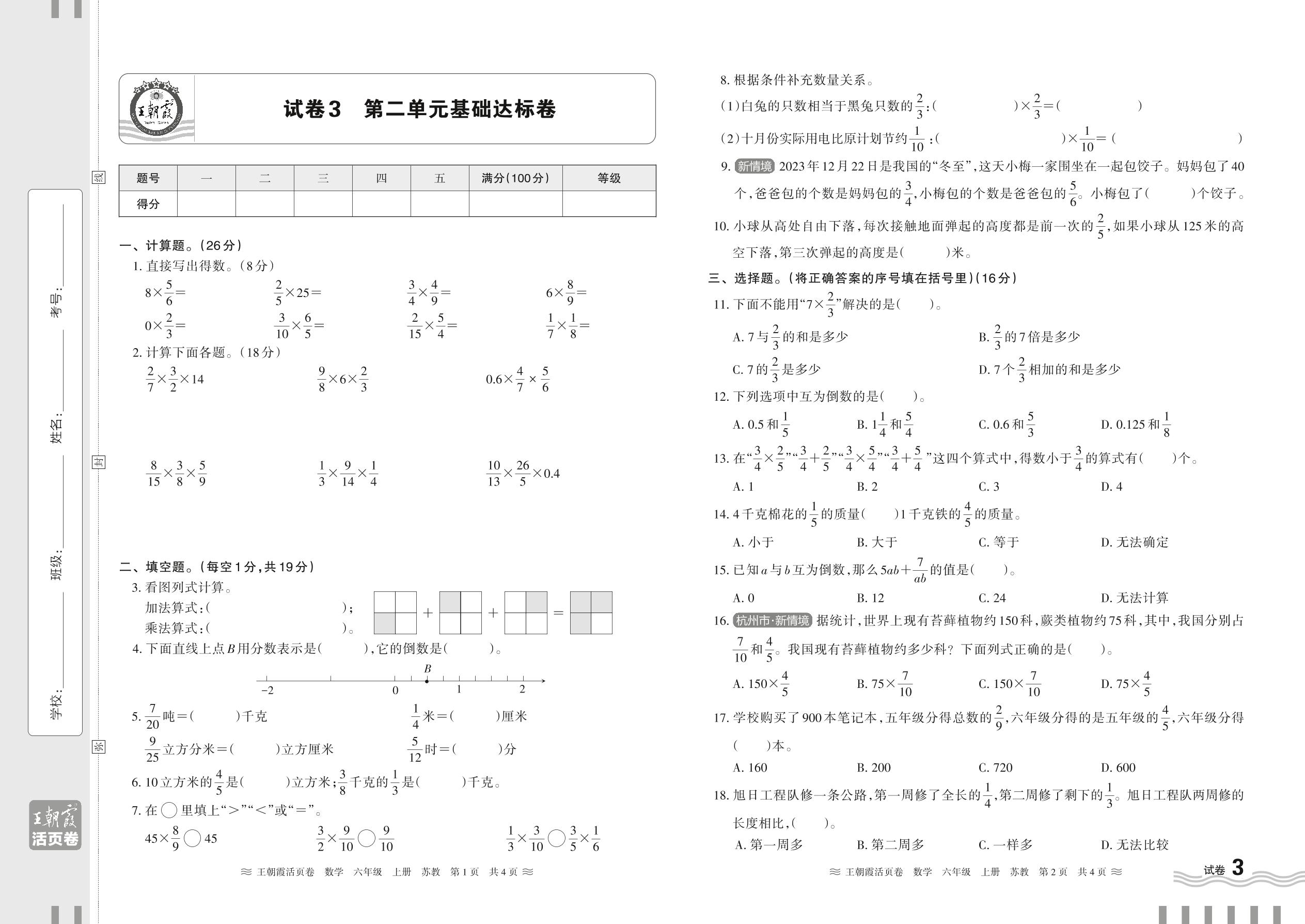 2024秋上册六年级数学苏教版 第二单元基础达标卷【3】
