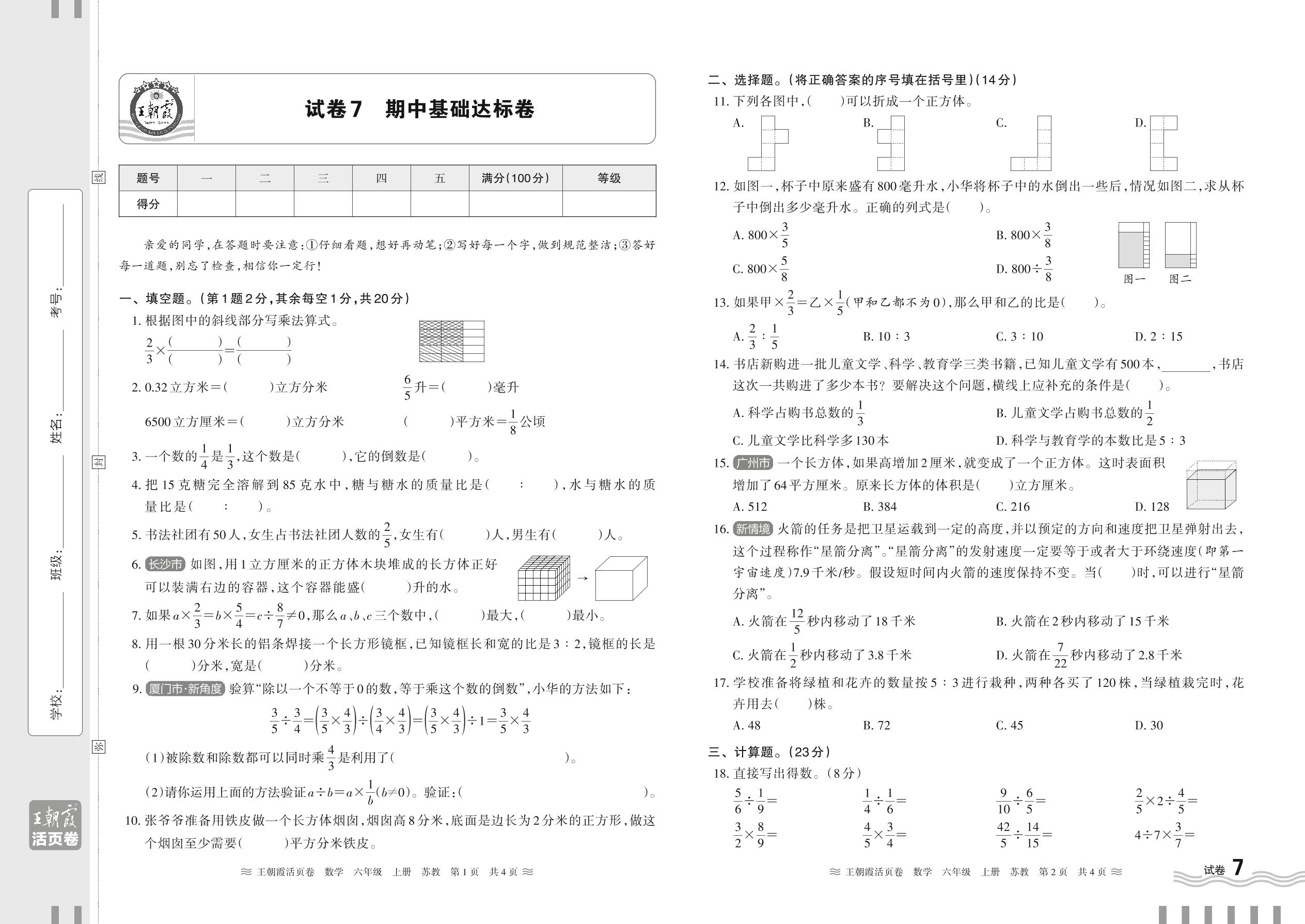 2024秋上册六年级数学苏教版 期中基础达标卷【7】