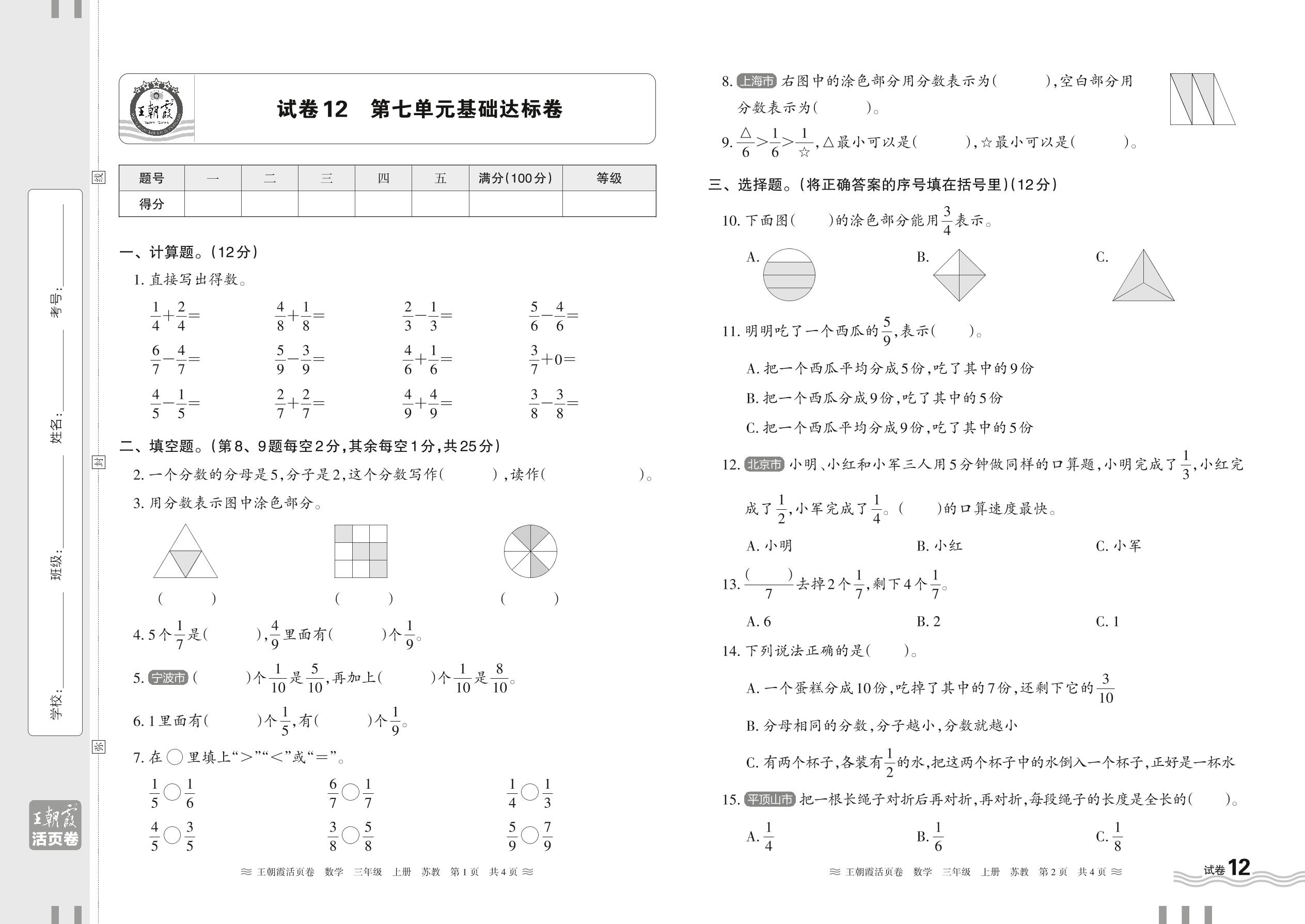 2024秋上册三年级数学苏教版 第七单元基础达标卷【12】
