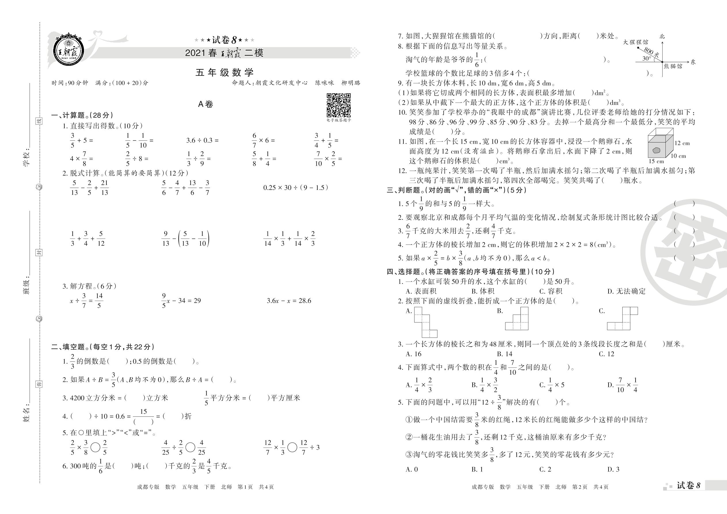 王朝霞期末模拟卷五年级下册数学(北师版)_R210804162114【8】
