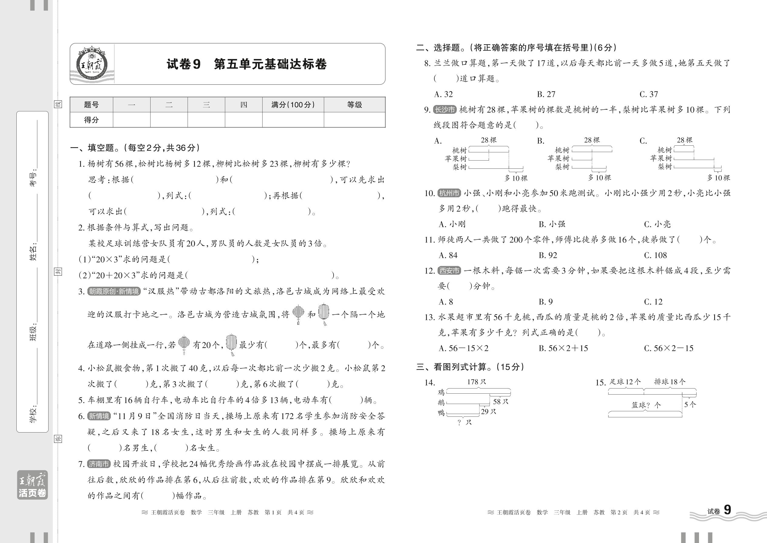 2024秋上册三年级数学苏教版 第五单元基础达标卷【9】