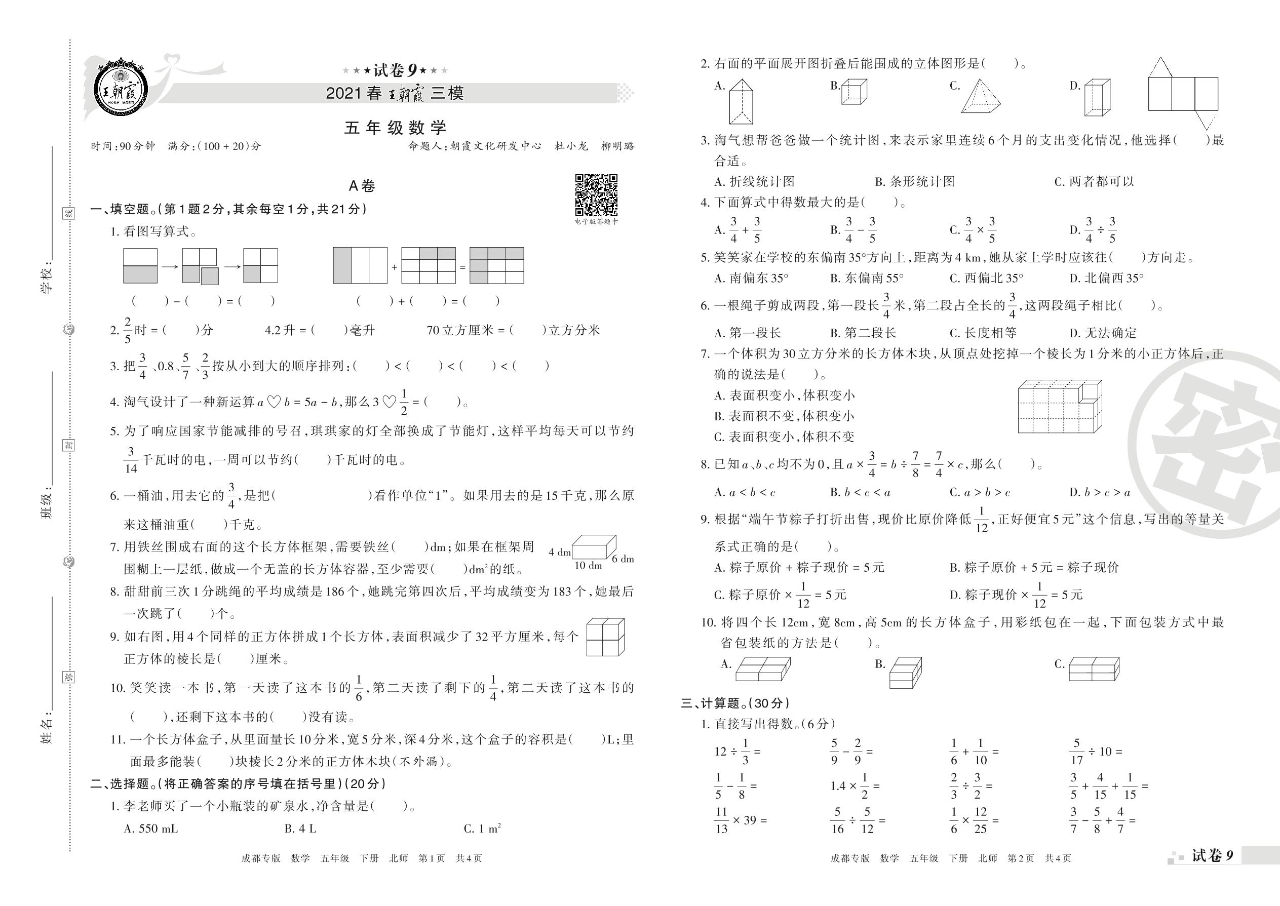 王朝霞期末模拟卷五年级下册数学(北师版)_R210804162119【9】
