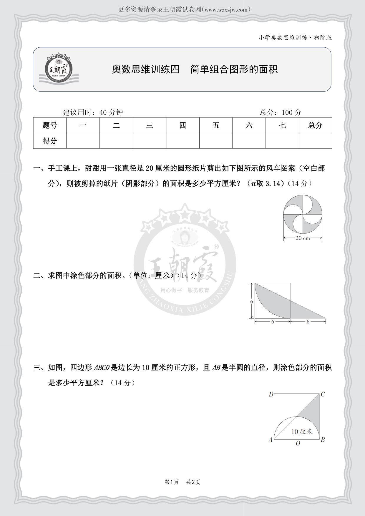 小学奥数思维训练四 简单组合图形的面积(初阶版)