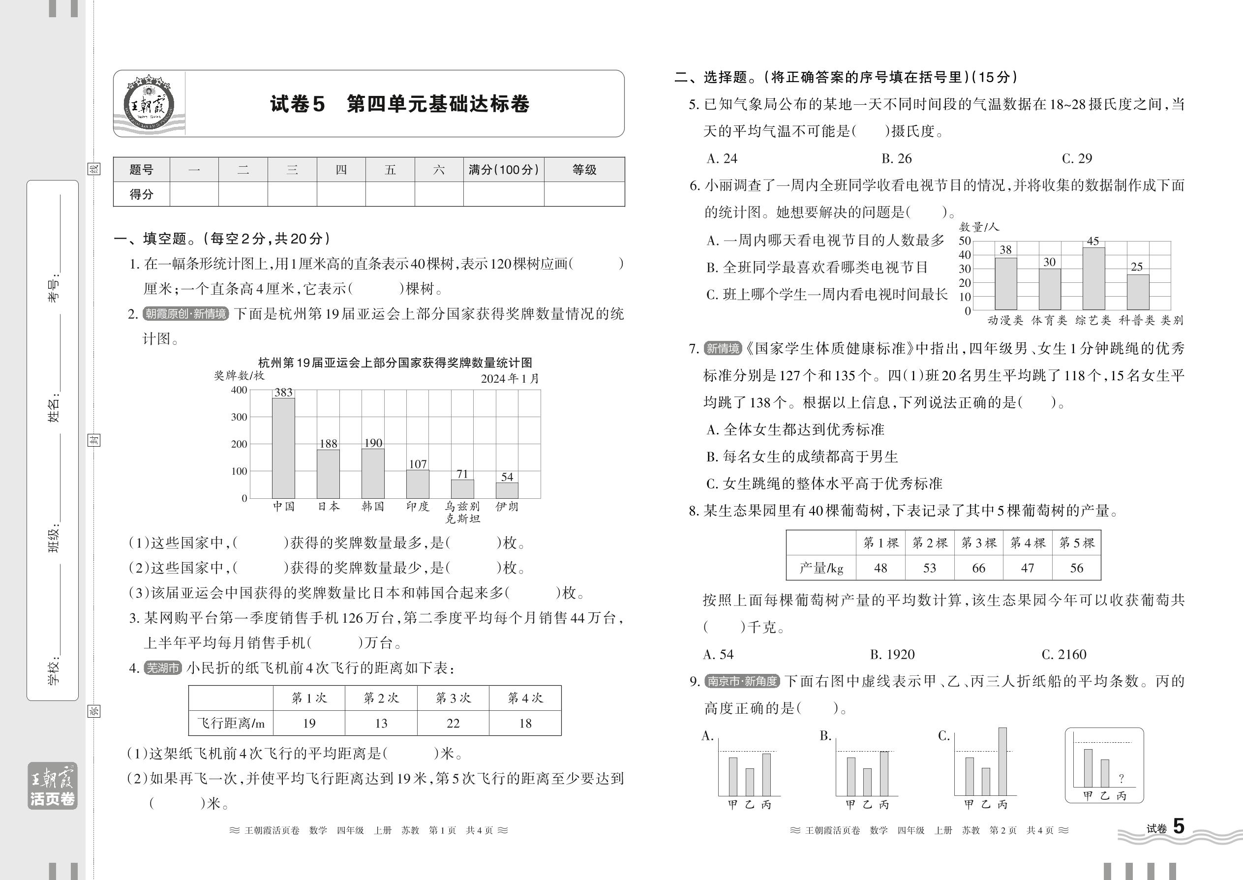 2024秋上册四年级数学苏教版 第四单元基础达标卷【5】