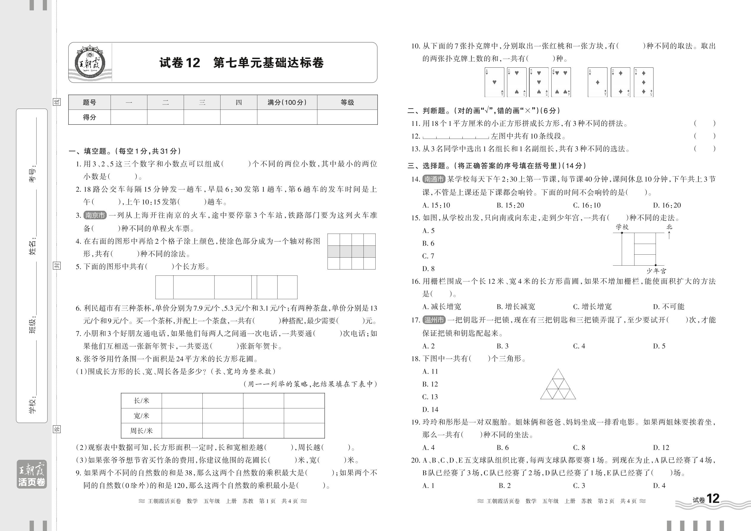 2024秋上册五年级数学苏教版 第七单元基础达标卷【12】