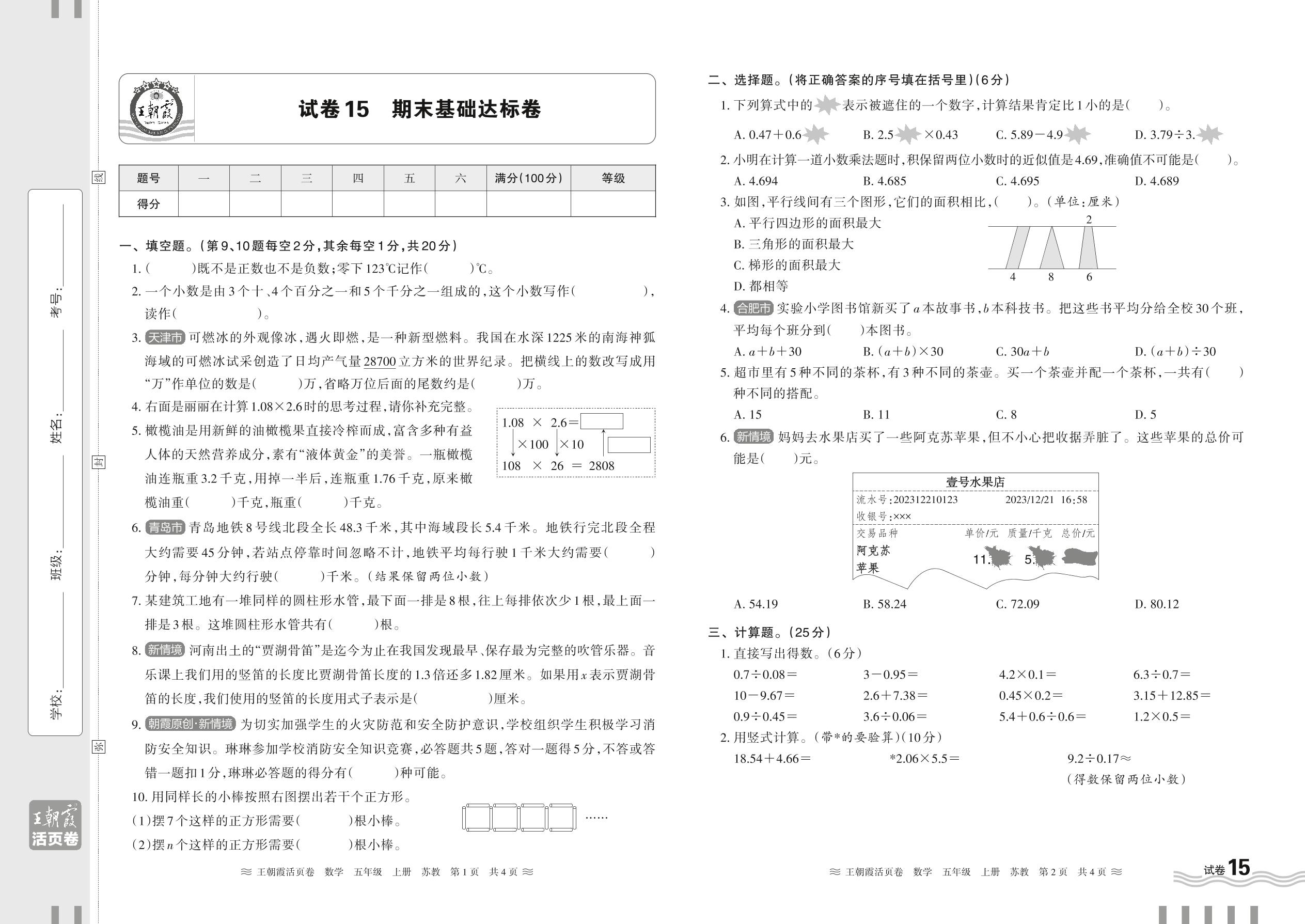 2024秋上册五年级数学苏教版 期末基础达标卷【15】