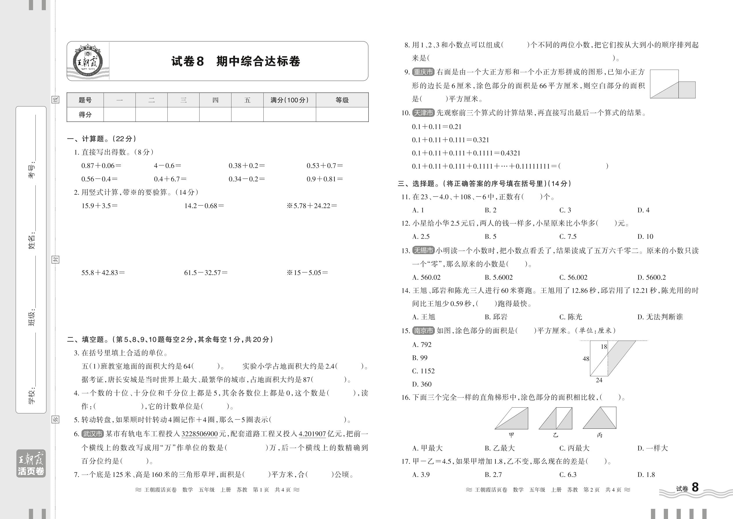 2024秋上册五年级数学苏教版 期中综合达标卷【8】