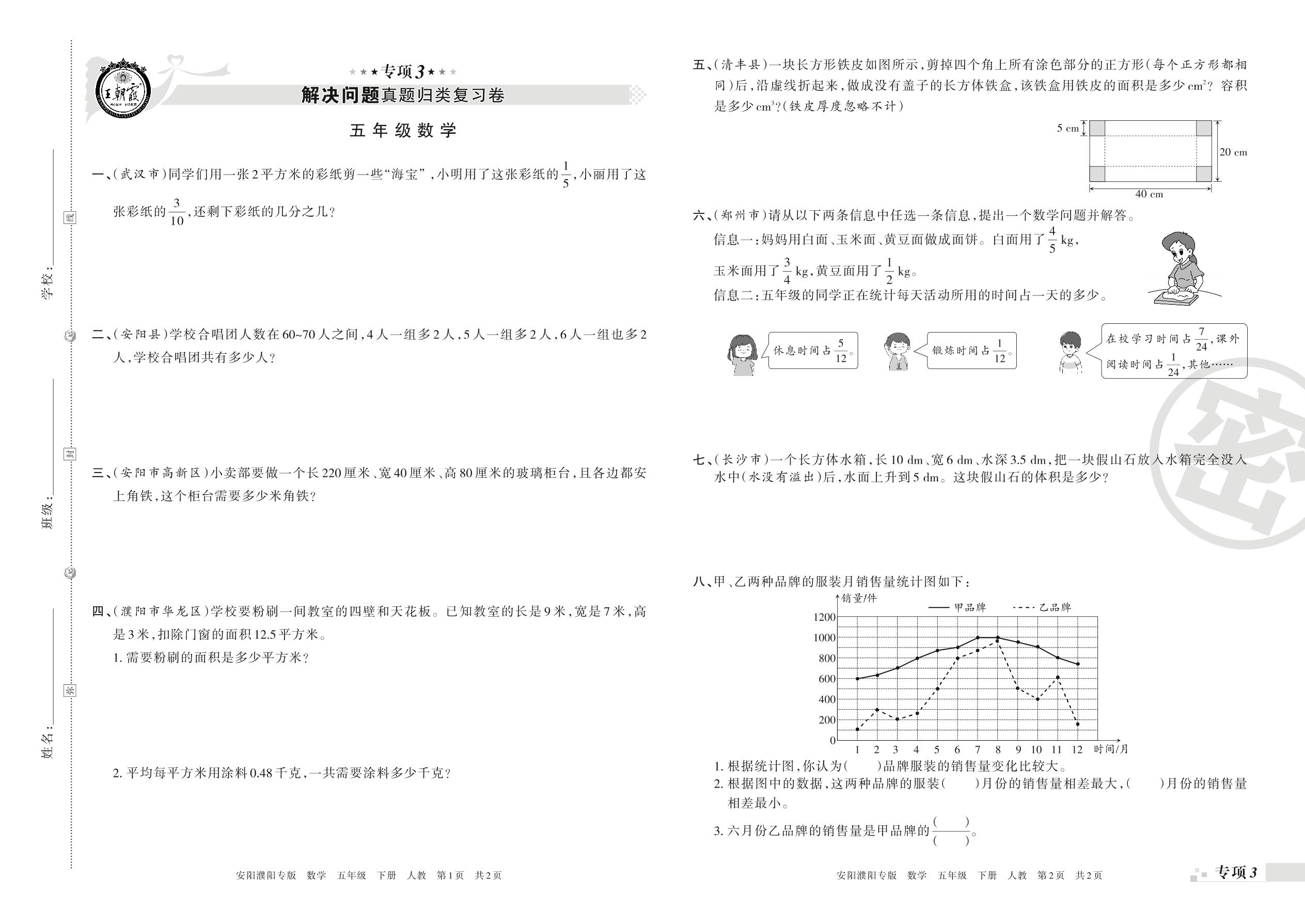 王朝霞期末专项卷——解决问题真题归类复习、新颖题速递:生活与数学五年级下册数学(人教版)_R211208155742114【0】