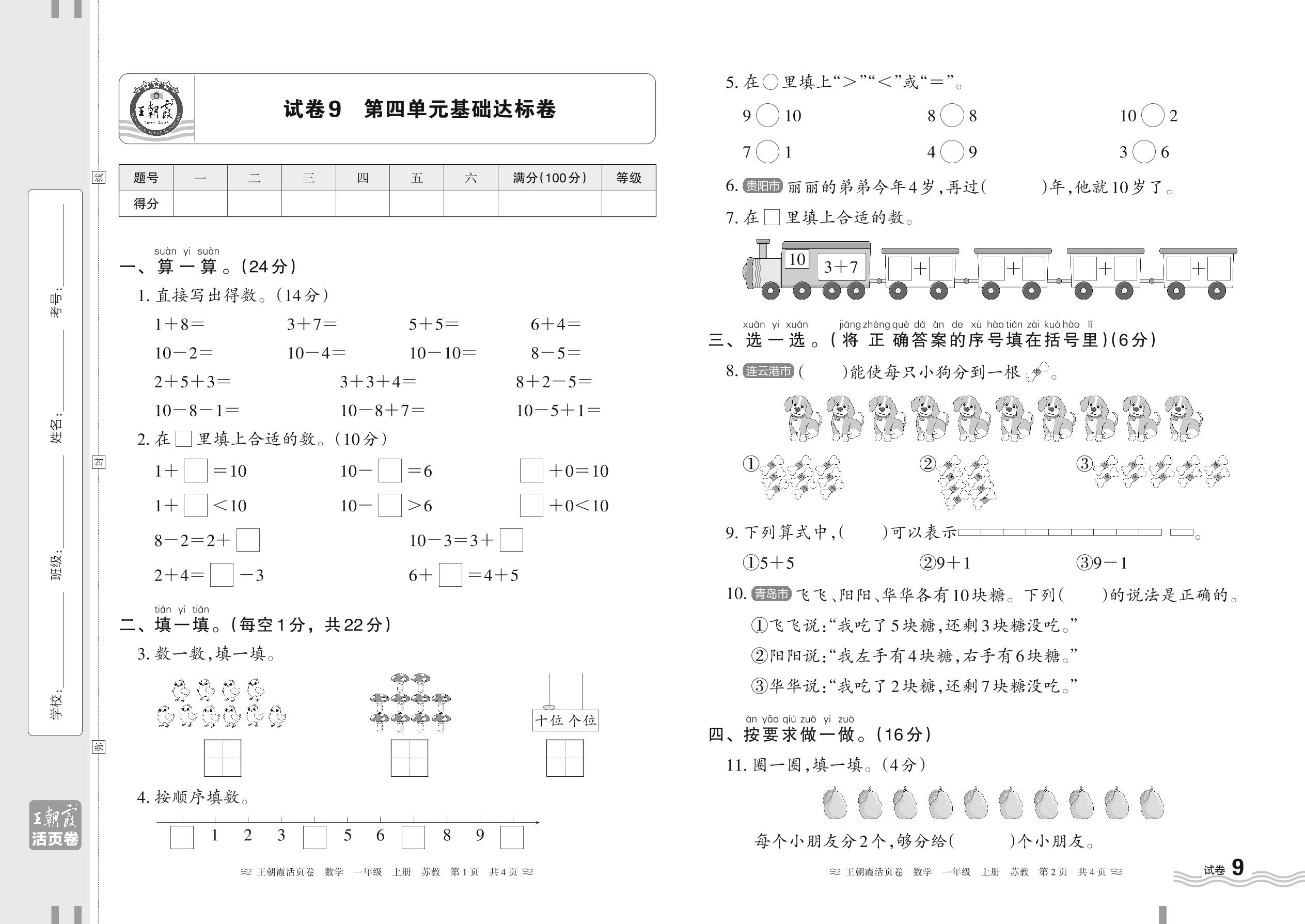 2024秋上册一年级数学苏教版(2024) 第四单元基础达标卷【9】
