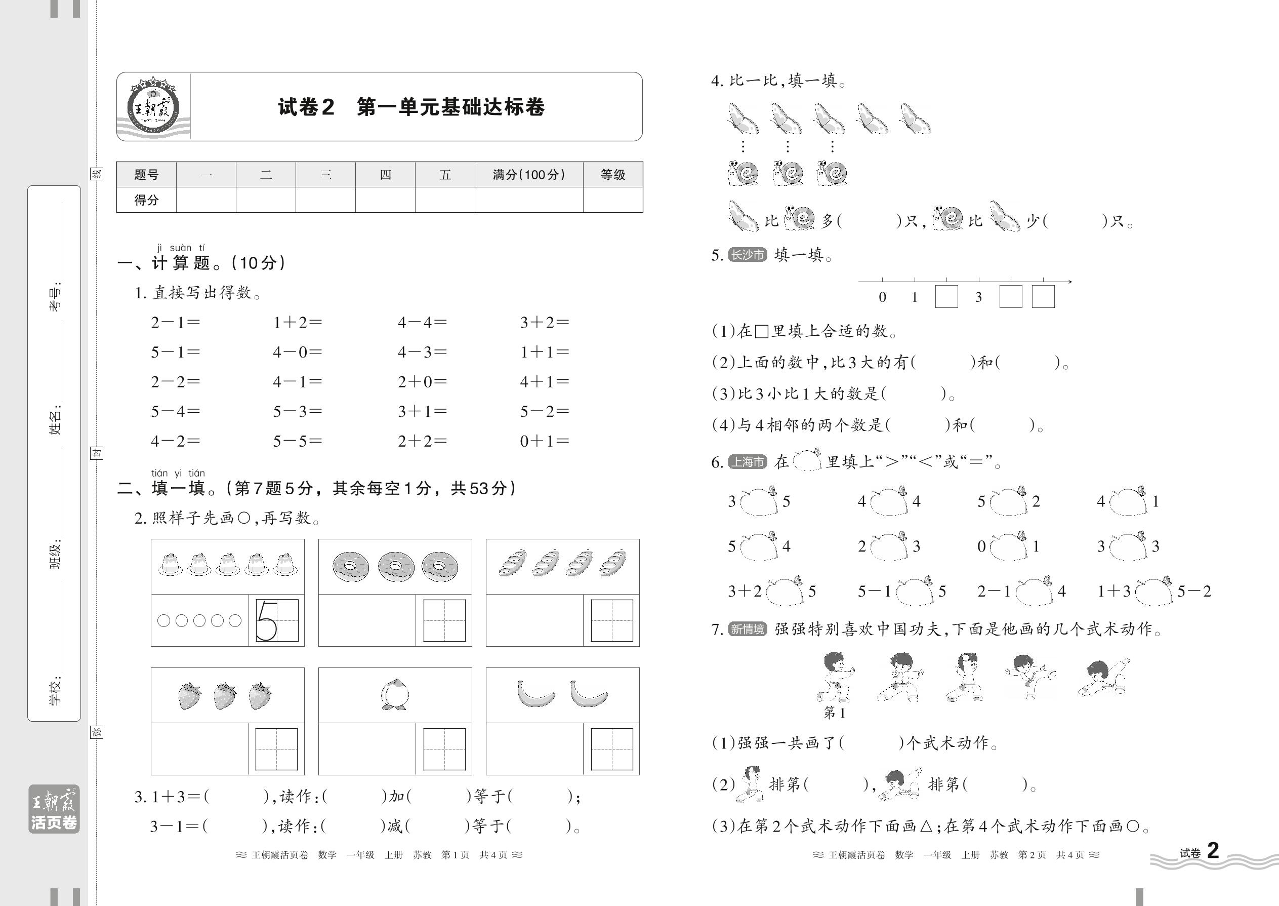 一年级数学苏教版(2024)上册单元卷