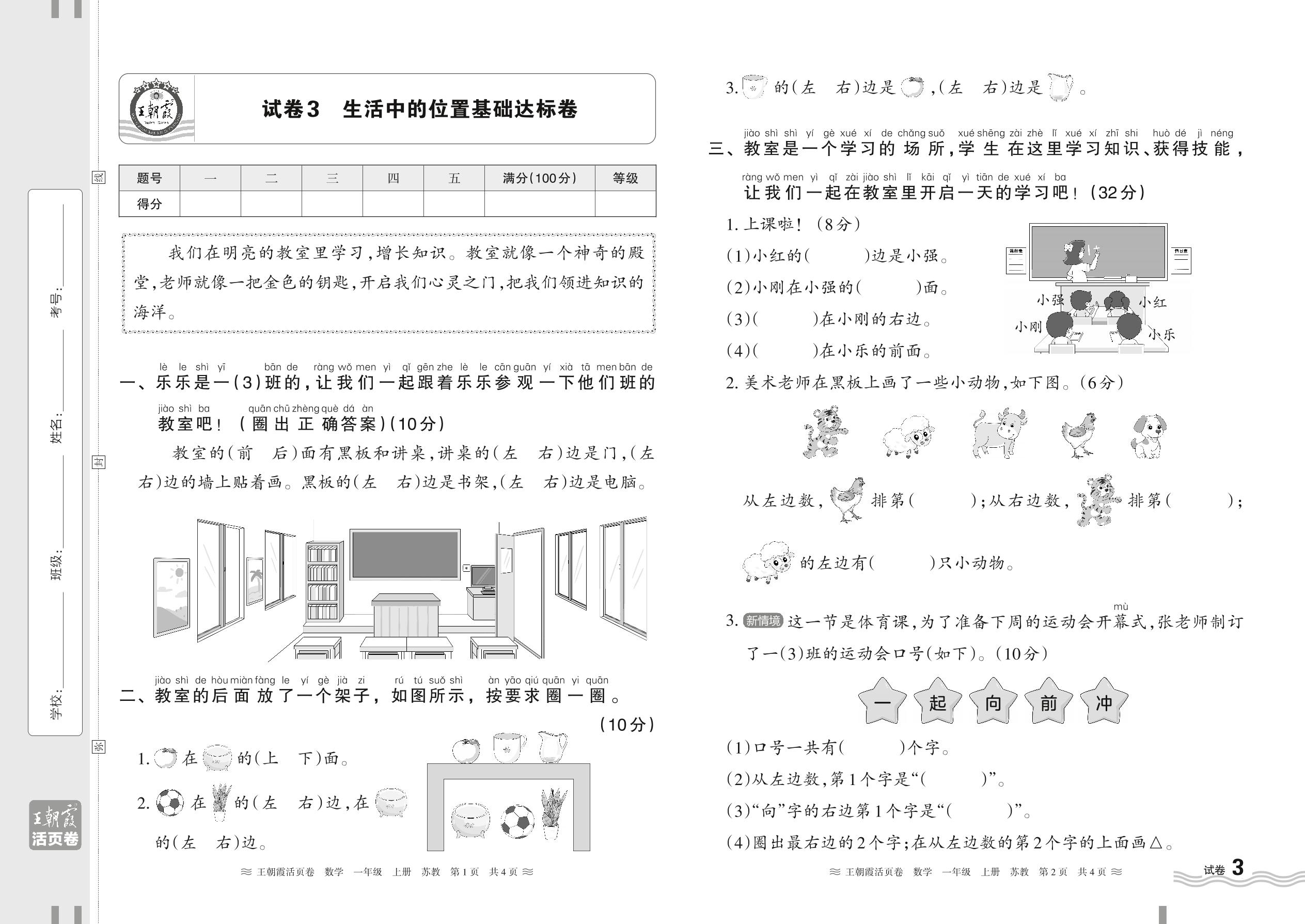 2024秋上册一年级数学苏教版(2024) 生活中的位置基础达标卷【3】