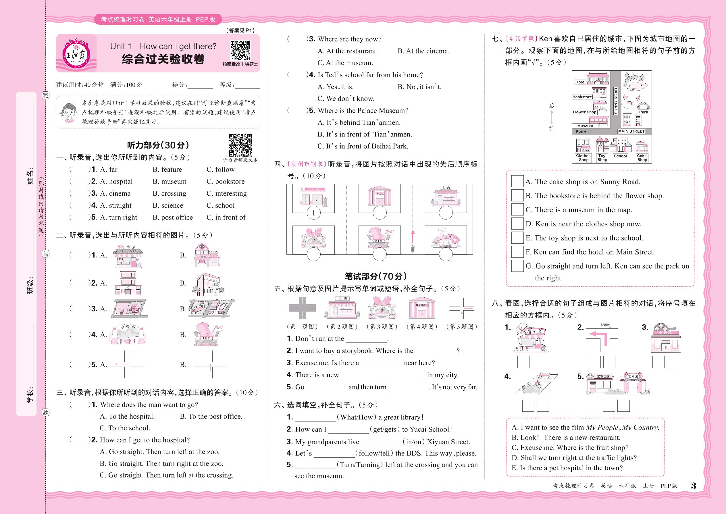 2024秋上册六年级英语人教PEP版(三起始) Unit 1 综合过关验收卷