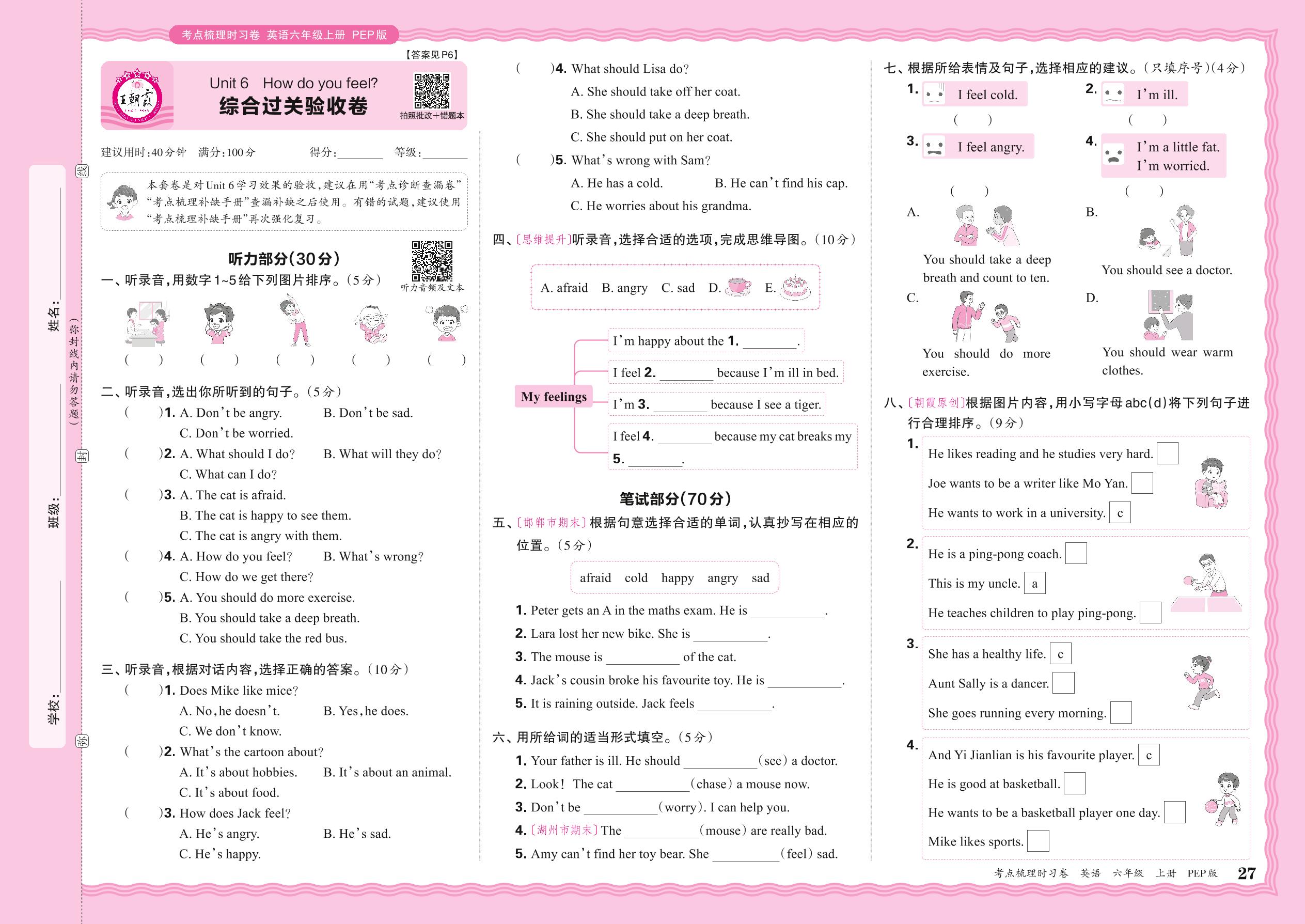 六年级英语人教PEP版(三起始)上册单元卷