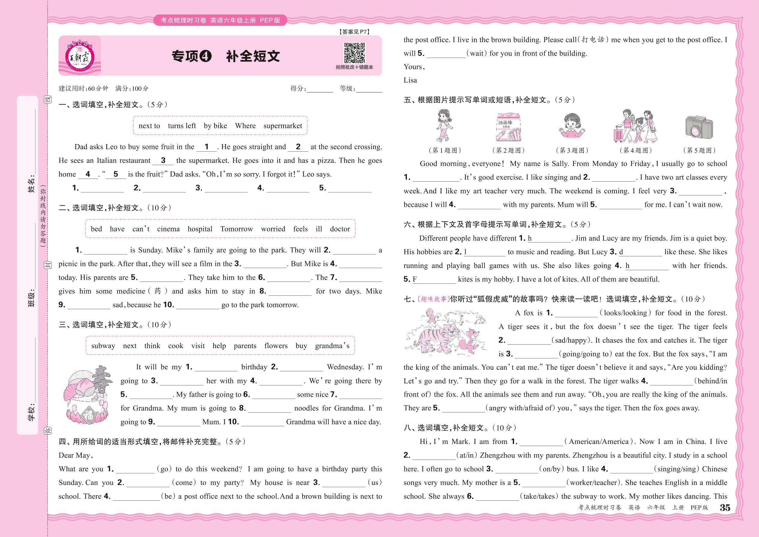 2024秋上册六年级英语人教PEP版(三起始) 期末专项卷KD版·补全短文【4】