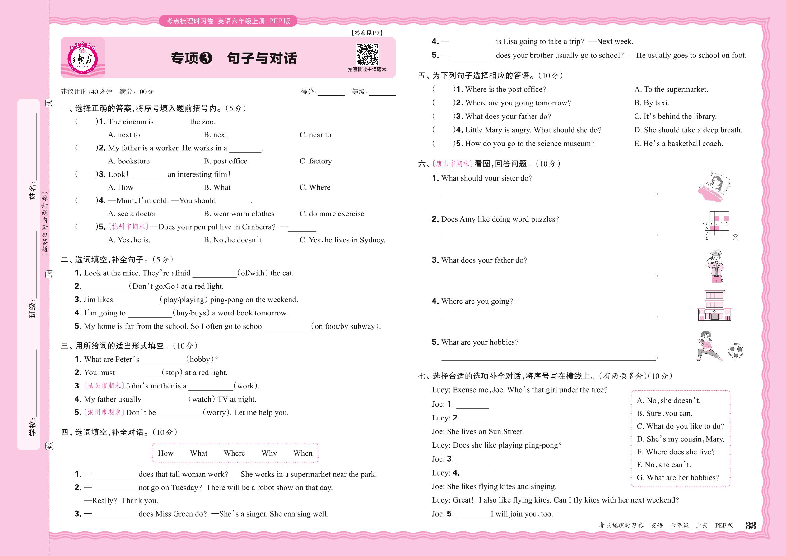 2024秋上册六年级英语人教PEP版(三起始) 期末专项卷KD版·句子与对话【3】