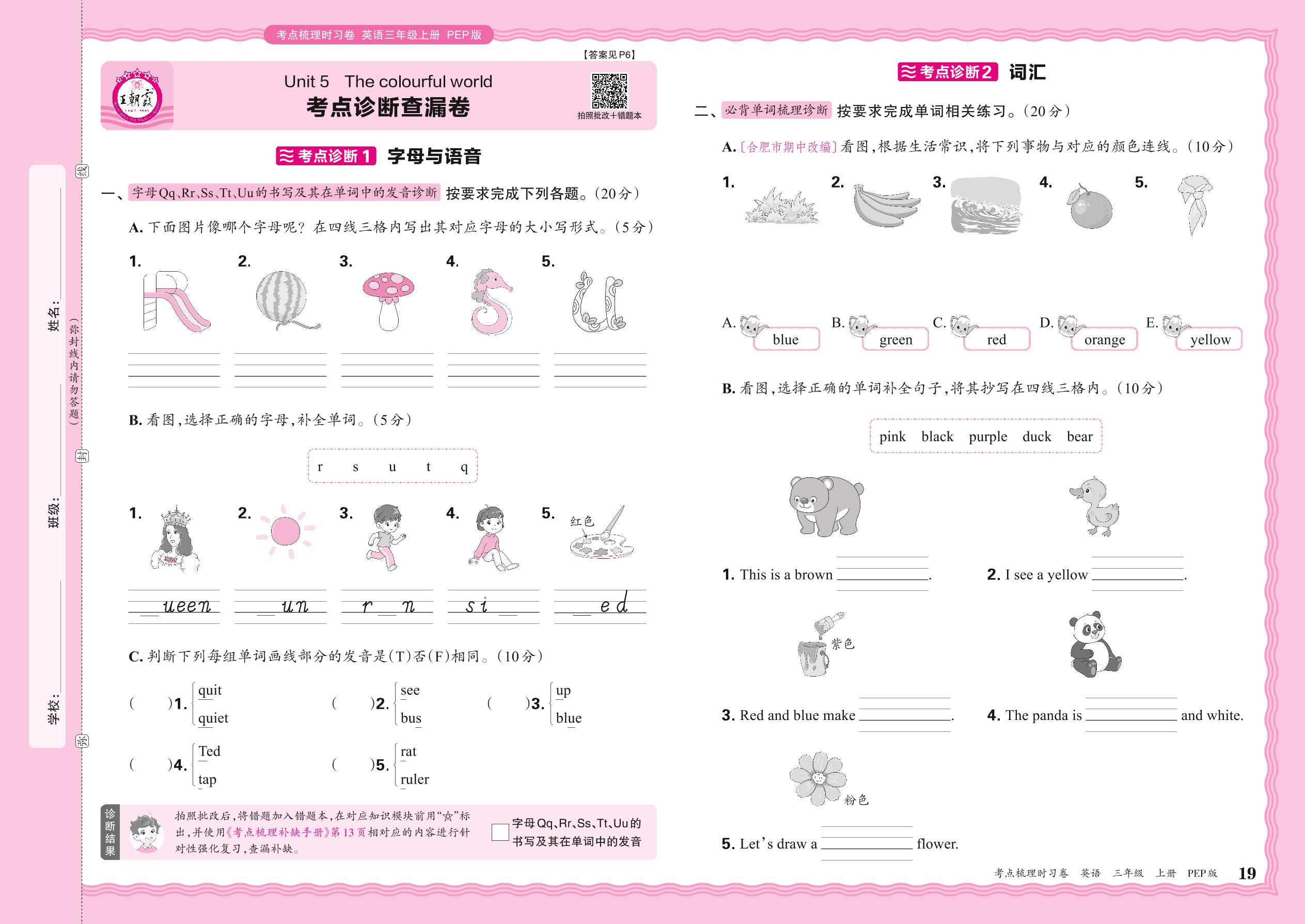 2024秋上册三年级英语人教PEP版(三起始) Unit 5 考点诊断查漏卷
