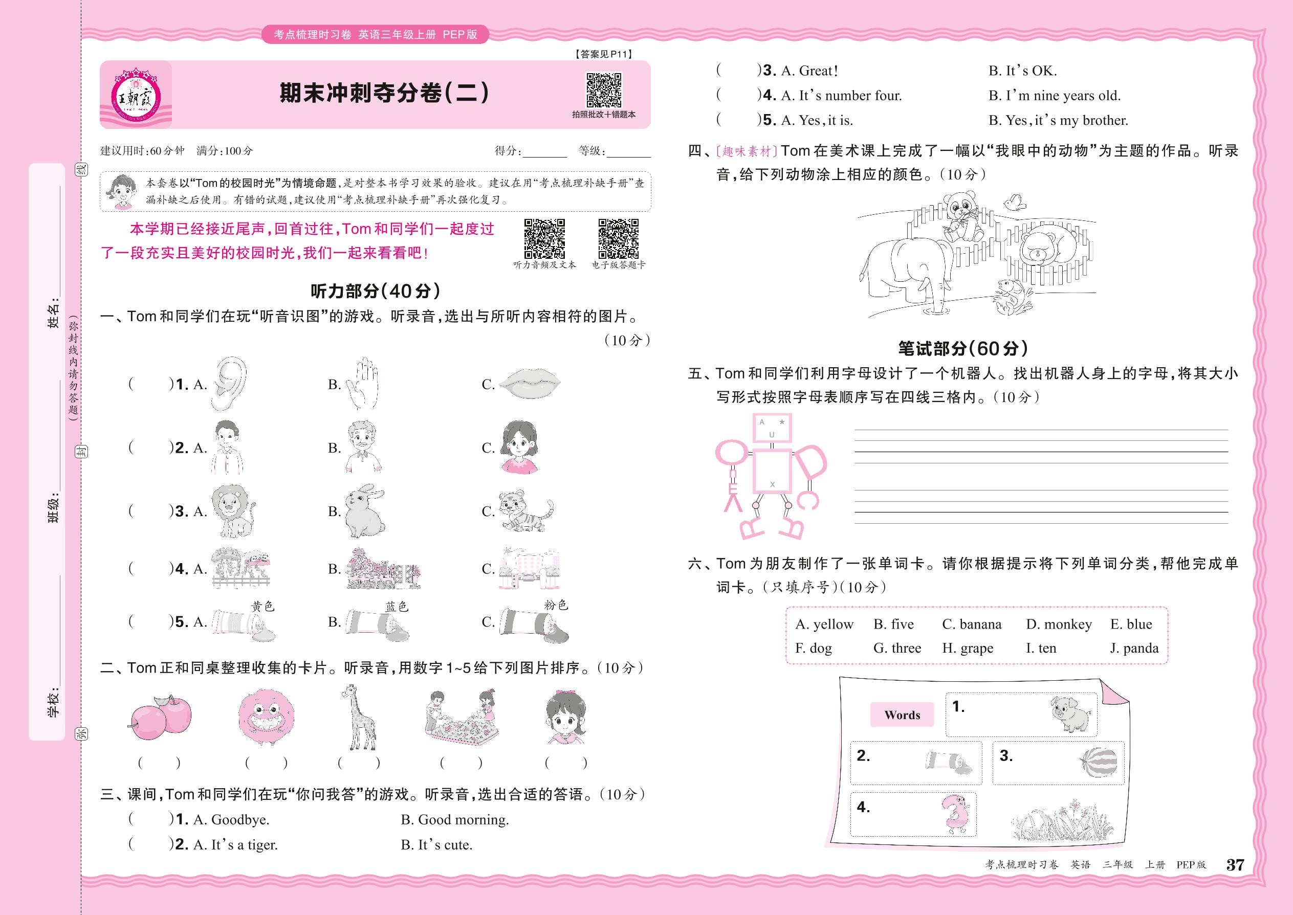 2024秋上册三年级英语人教PEP版(三起始) 期末冲刺夺分卷(二)