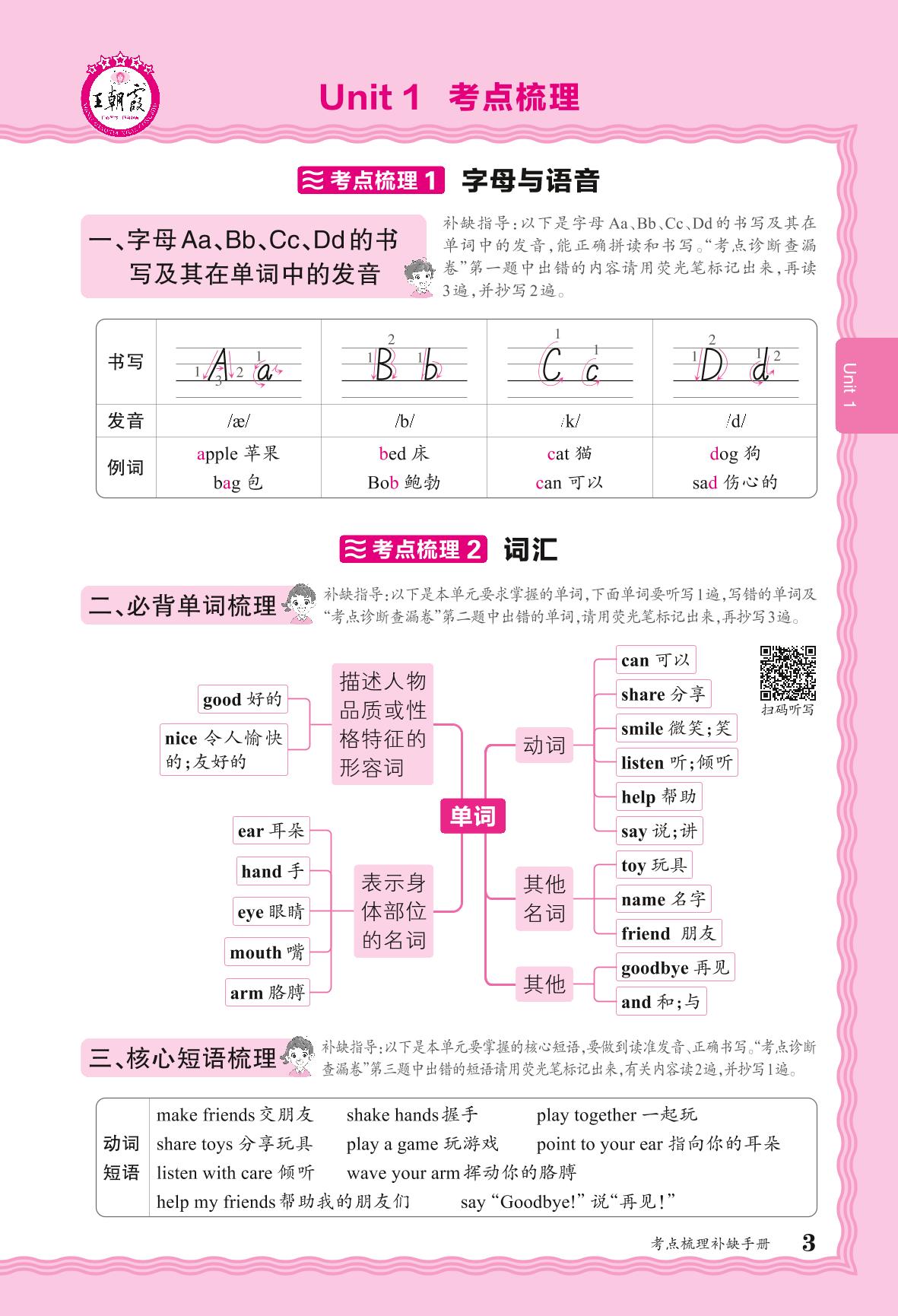 2024秋上册三年级英语人教PEP版(三起始) 考点梳理补缺手册——Unit 1 Making friends