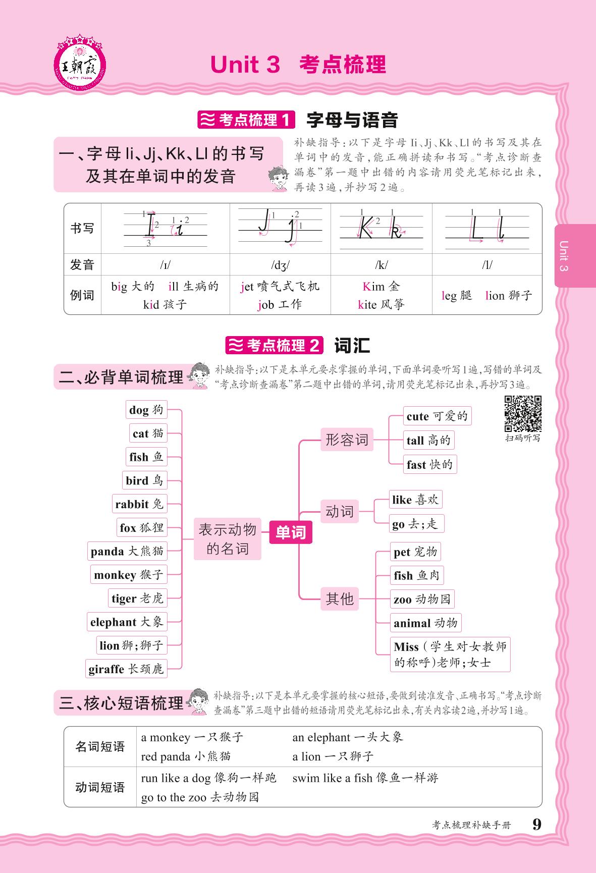 2024秋上册三年级英语人教PEP版(三起始) 考点梳理补缺手册——Unit 3 Amazing animals